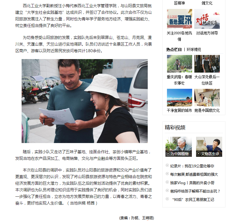 9月7日,人民网陕西频道,以《三下乡|银河集团官网暑期实践队开展旅游资源实地调研》为题,报道了银河集团官网“助力山阳”实践队,暑期赴商洛市山阳县进行山阳全域旅游资源实地调研活动。