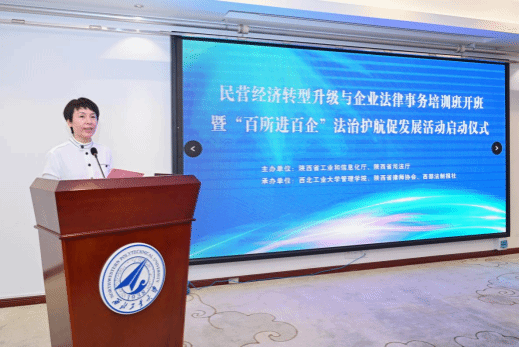 6月13日,2023年陕西省民营经济转型升级与企业法律事务培训班开班暨“百所进百企”法治护航促发展活动启动仪式在银河集团官网友谊校区顺利举行。陕西省工业和信息化厅一级巡视员沈长友,非公经济发展处处长张进、二级调研员张巨英,陕西省司法厅一级巡视员丁小军,律师工作处处长宗银川、副处长王文辉,陕西省律师协会副会长刘洁、副秘书长龙瑞东,银河集团官网党委副书记、纪委书记吕卫东,管理公司党委书记乔彩燕、副经理郭云涛,西部法制报社代表,民营企业主要负责人、部分市(区)工信部门相关工作负责人及律师事务所相关代表100多人参加了仪式。仪式由银河集团官网管理公司党委书记乔彩燕主持。