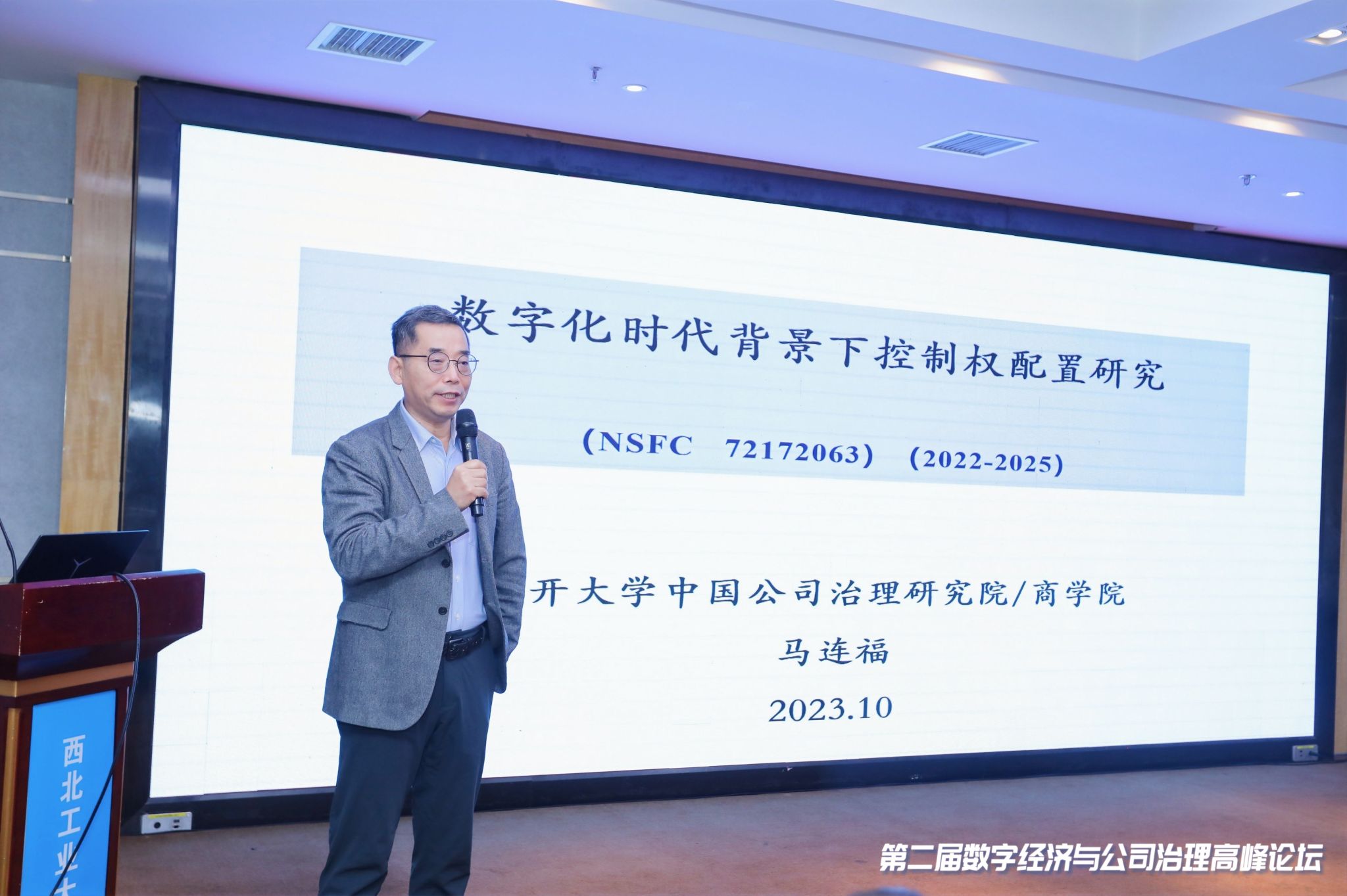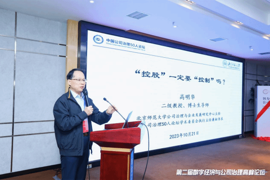第二场主题报告是马连福教授的“数字化时代背景下控制权配置研究”。他从现代公司的“铁三角”关系出发,深刻阐述了“控制权配置”在公司治理中的重要性,提出控制权配置的关键是激发公司最稀缺的重要资源要素,分析了数字化背景对公司治理产生的影响,提出了数字化时代改变公司控制权配置的路径,即差异化投票、超额委派董事或轮值董事长、优化管理层级和幅度。