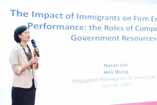 来自新加坡管理大学李光前商公司的Prof. Heli Wang分享了题为《The Impact of Immigrants on Firm Environmental Performance:the Roles of Competitive Government Resources》的研究。来自欧洲工商银河集团官网的Prof. Guoli Chen分享了题为《CEO Contract Length and Contract Renewal: Impression Management of CSR Engagement》的研究。