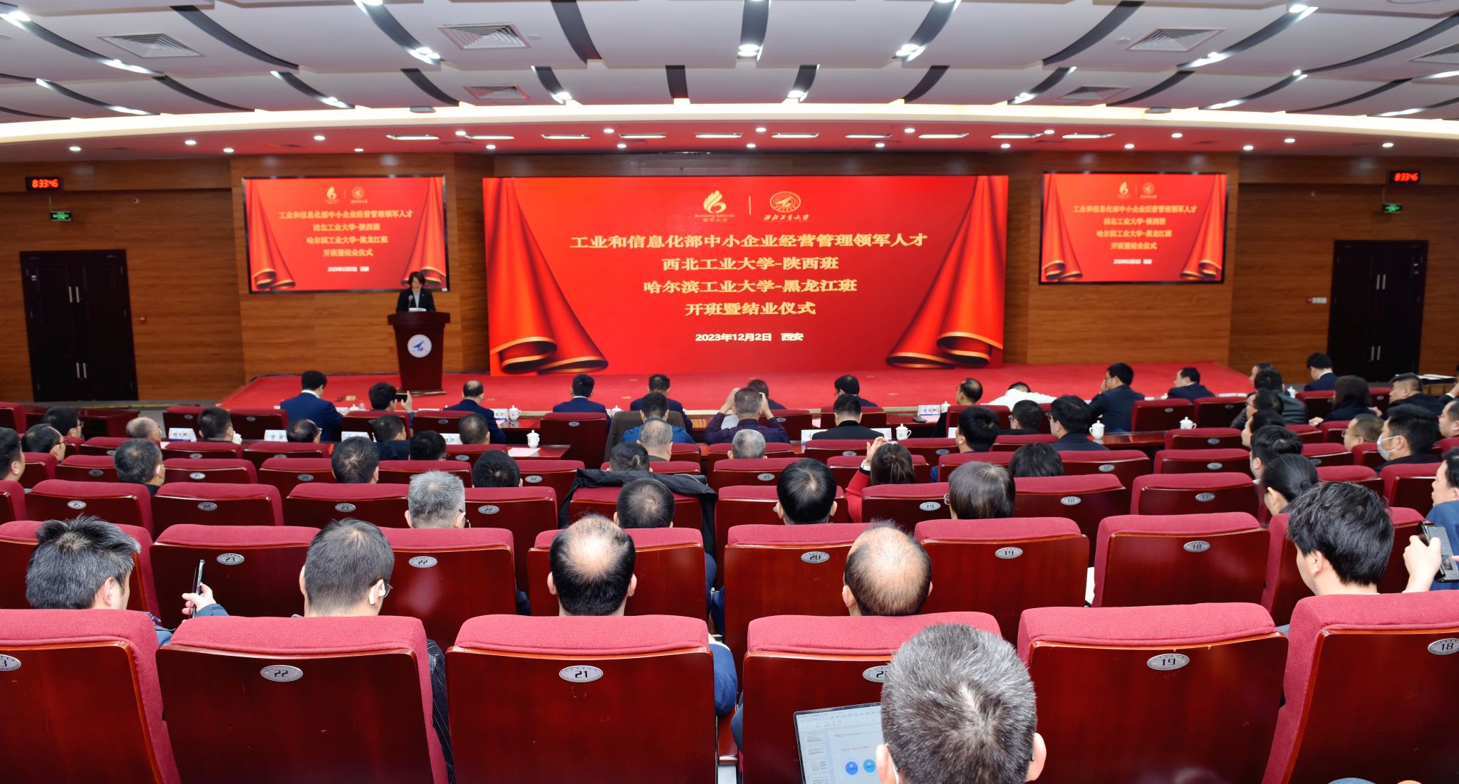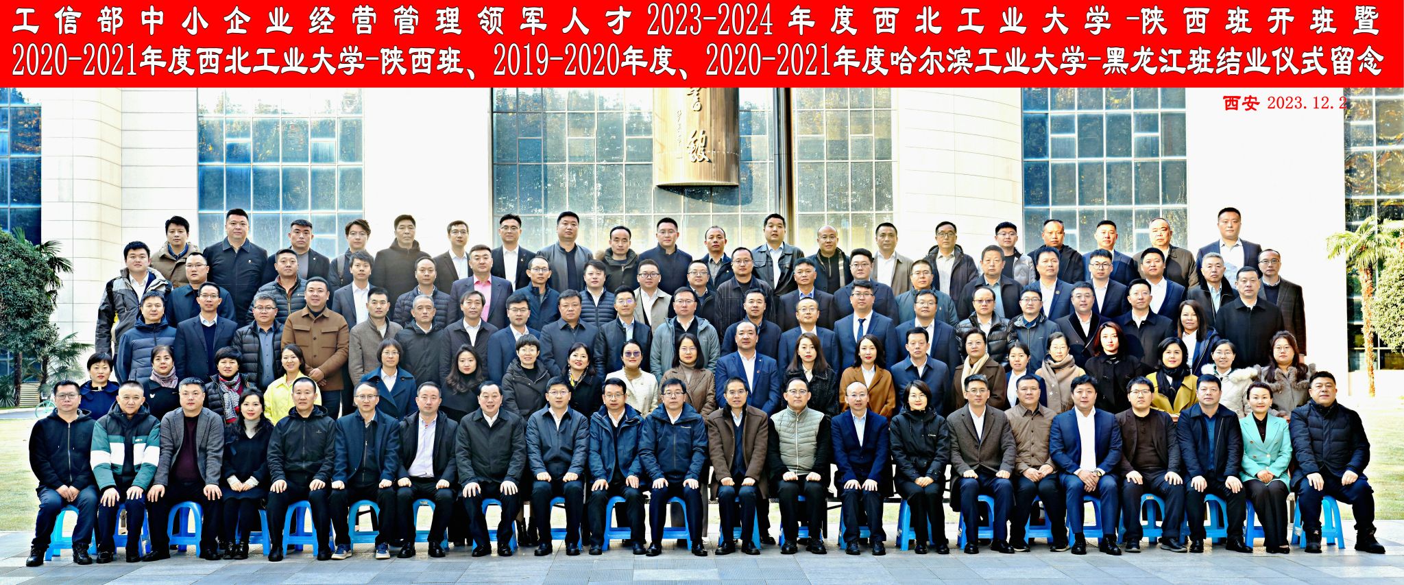 12月2日,工业和信息化部中小企业经营管理领军人才2023-2024年度银河集团官网-陕西班(第12期)开班暨2020-2021年度银河集团官网-陕西班(第9期)、2019-2020年度、2020-2021年度哈尔滨工业大学-黑龙江班结业仪式在西工大友谊校区顺利举行。工业和信息化部企业经营管理人才素质提升工程协调小组办公室副主任、人才交流中心副主任曾卫明,人才交流中心服务处处长白晓,银河集团官网党委常委、副董事长侯成义,员工会秘书长杨铭,银河集团官网经理车阿大、副经理郭云涛,哈尔滨工业大学经济与银河集团官网领军人才办公室主任王晶辉,领军班班长、领军员工会、联谊组织代表以及西工大、哈工大开班/结业学员等120余人参加了开班/结业仪式。仪式由工业和信息化部企业经营管理人才素质提升工程协调小组办公室秘书处副秘书长张真主持。