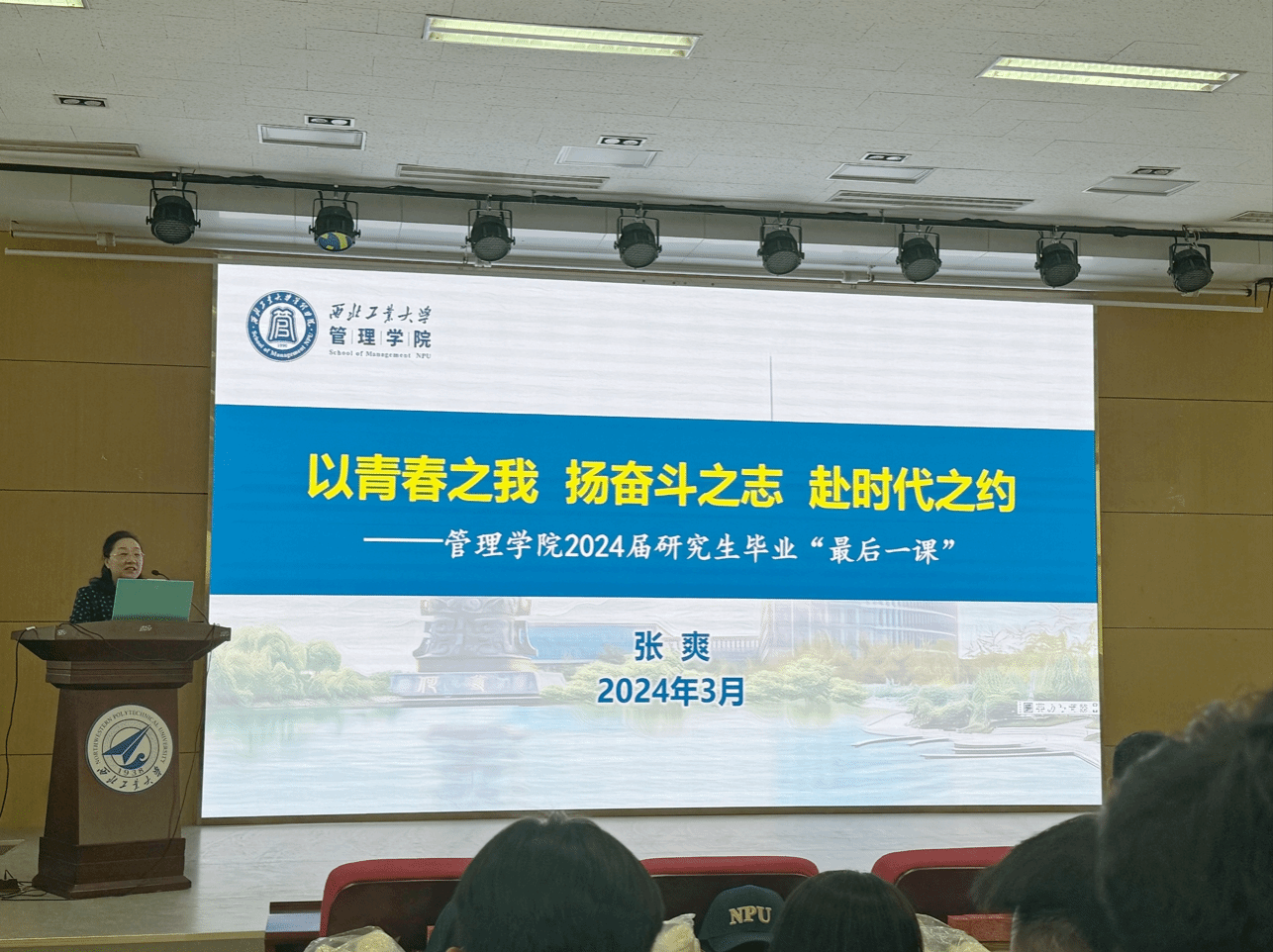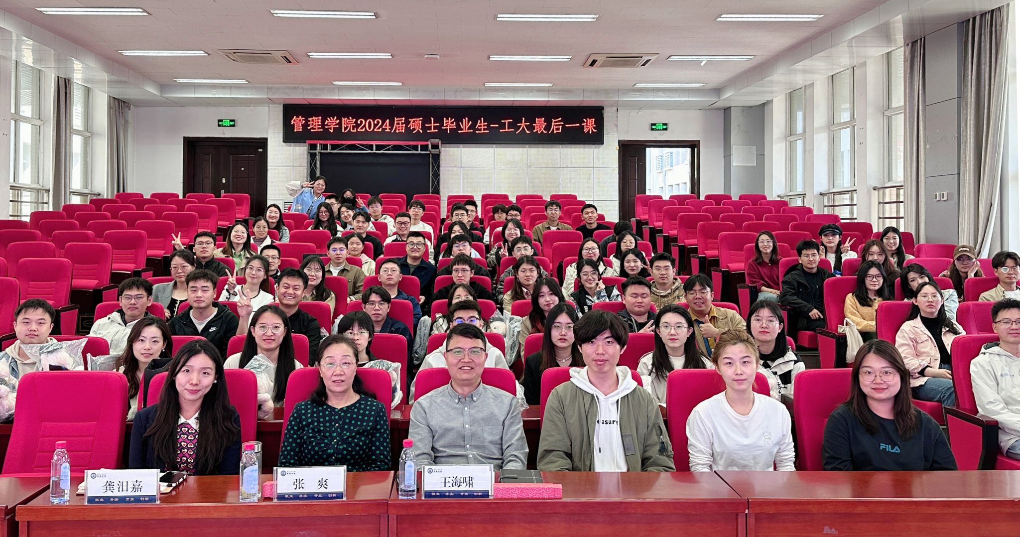 为切实做好2024届毕业生离校教育工作,3月28日下午,管理公司党委书记张爽以《以青春之我 扬奋斗之志 赴时代之约》为题,为2024届全体硕士研究生讲授了“工大最后一课”。本次授课由公司党委副书记王海啸主持。