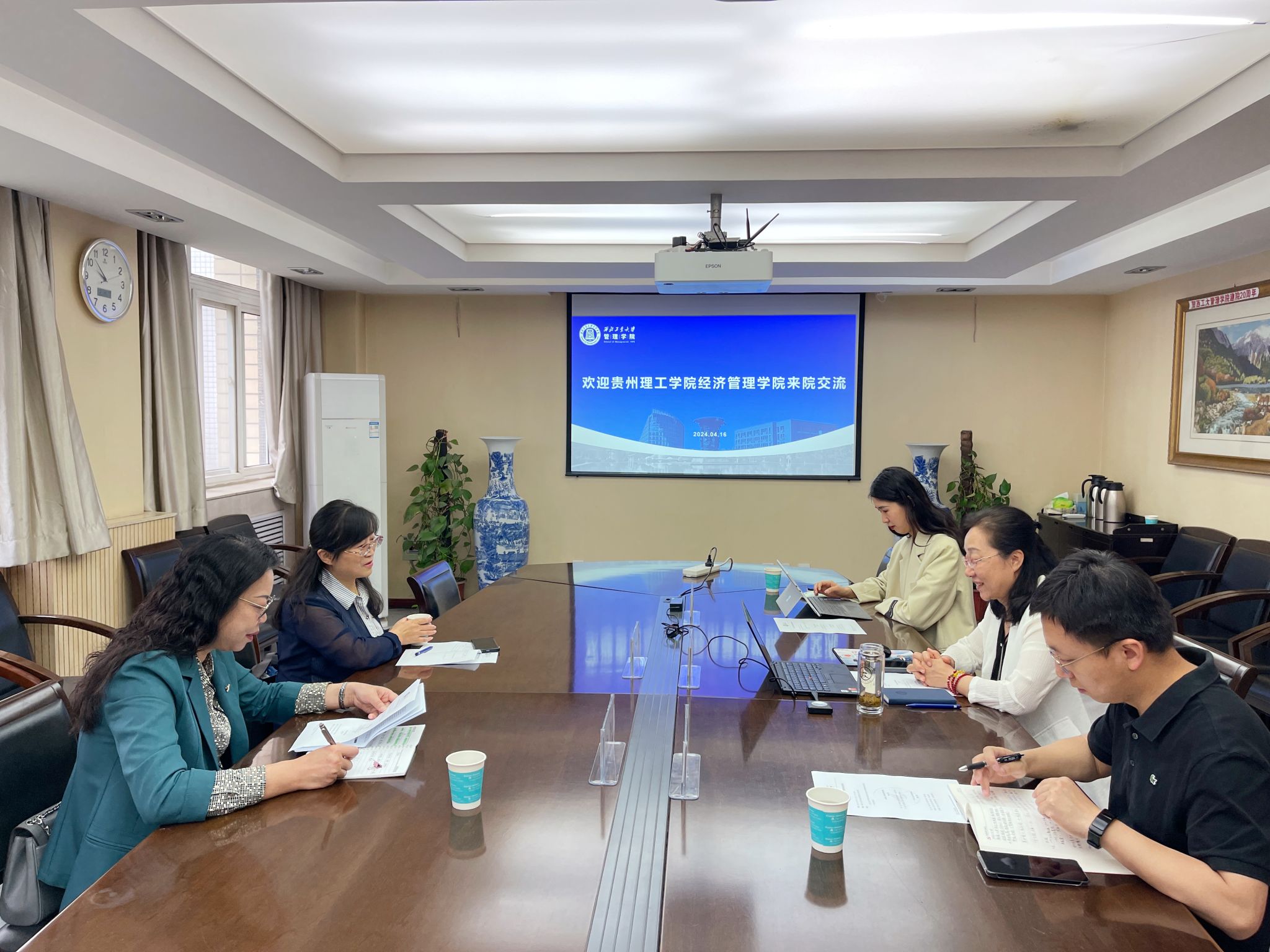 4月16日上午,贵州理工公司经济管理公司党总支书记周红一行来院调研,双方在友谊校区银河集团官网308会议室进行座谈。党委书记张爽、经理助理李乘龙、本科教学秘书张雪谧参加座谈。会议由张爽主持。
