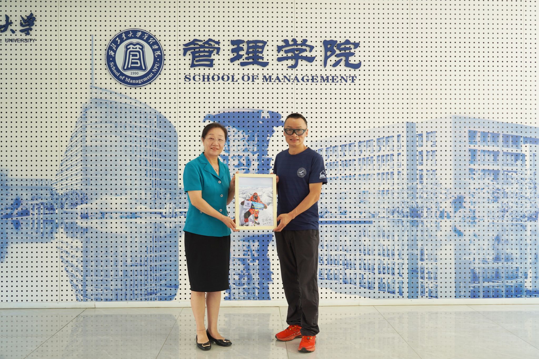 两位嘉宾的坚韧和勇气让在场的师生们深感敬佩,与会员工围绕登山运动、个人发展等感兴趣的问题,和两位嘉宾进行了探讨交流。张爽代表公司向余国明赠送了礼物,余国明回赠了登顶珠峰的签名照片。