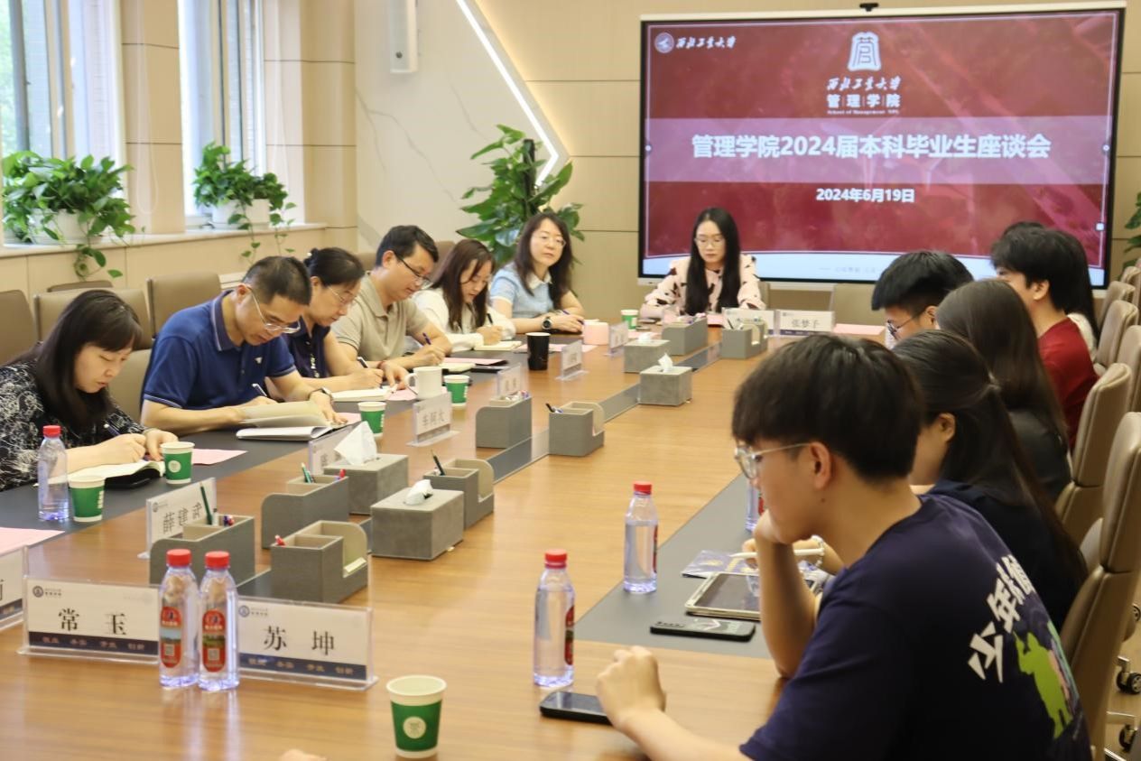 6月19日上午,2024届本科生毕业座谈会在公司212会议室举行。公司经理车阿大、党委书记张爽、副经理陈琳、党委副书记王海啸、经理助理白洁、各系系主任、毕业年级辅导员、本科生教学秘书以及12名本科毕业生代表齐聚一堂,以座谈会见证成长与收获。会议由党委副书记王海啸主持。