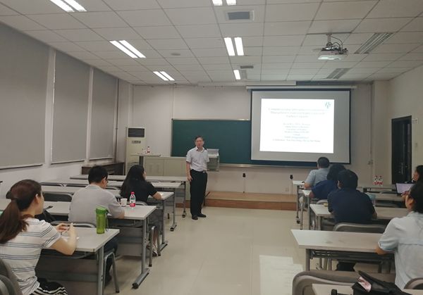 Kevin W. Li教授在报告中介绍了如何利用合作和非合作博弈方法分析闭环供应链中制造商、分销商和零售商的交互作用,其中重点考虑了零售商的公平关切对闭环供应链各个成员在分散和不同合作模型下均衡决策的影响,其研究思路新颖缜密,讲解深入浅出,在座的教师和员工均表示受益匪浅。