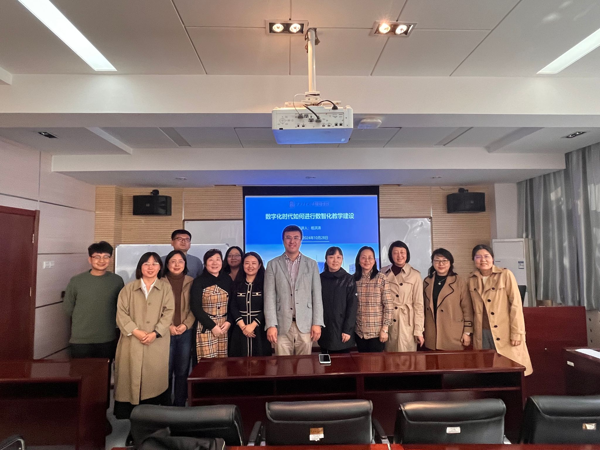 杨洪涛作题为《数字化时代如何进行数智化教学建设》的报告,围绕如何设计在线开放课程、虚拟仿真课程、线上线下混合式金课等方面进行了讲解,详细介绍了数字化课程思政示范课程的基本方法,分享了AI知识图谱课程、人工智能生成式大模型智慧课程、虚拟教研室建设的经验。最后,杨洪涛和与会教师们针对如何在教学过程中挖掘教学痛点、如何开展线上课程资源建设等展开热烈探讨。