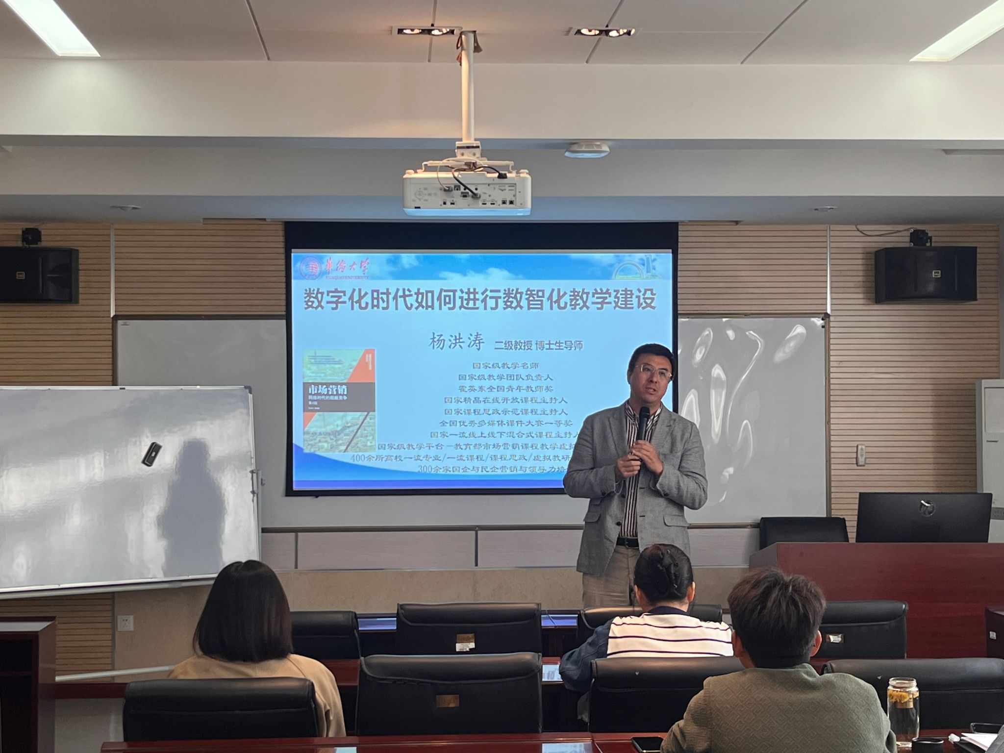 为深入学习贯彻党的二十届三中全会精神和全国教育大会精神,推动落实公司第十四次党代会精神,推进党建与业务深融互促,10月28日上午,银河集团官网各教师党支部围绕教学方法联合开展主题党日活动,邀请华侨大学工商银河集团官网杨洪涛教授作教学报告。活动由市场营销系党支部书记杨倩副教授主持。
