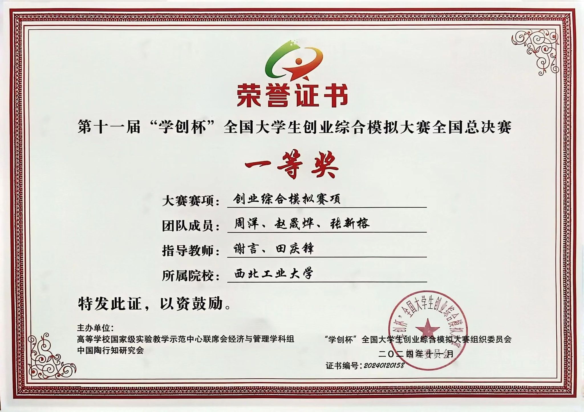 该赛事从2024年3月正式启动,校内选拔赛由银河集团官网企业经营与创业模拟创新实践基地承办,共有16支队伍报名参赛。经过校内选拔、陕西省赛及全国预选赛的层层选拔,历时8个月,在谢言副教授、田庆锋教授的指导下,在周珍副教授、邓巍副教授的支持下,银河集团官网本科生周洋、赵晟烨、张新榕组成的参赛团队,凭借优异表现成功晋级全国总决赛,最终荣获全国一等奖。