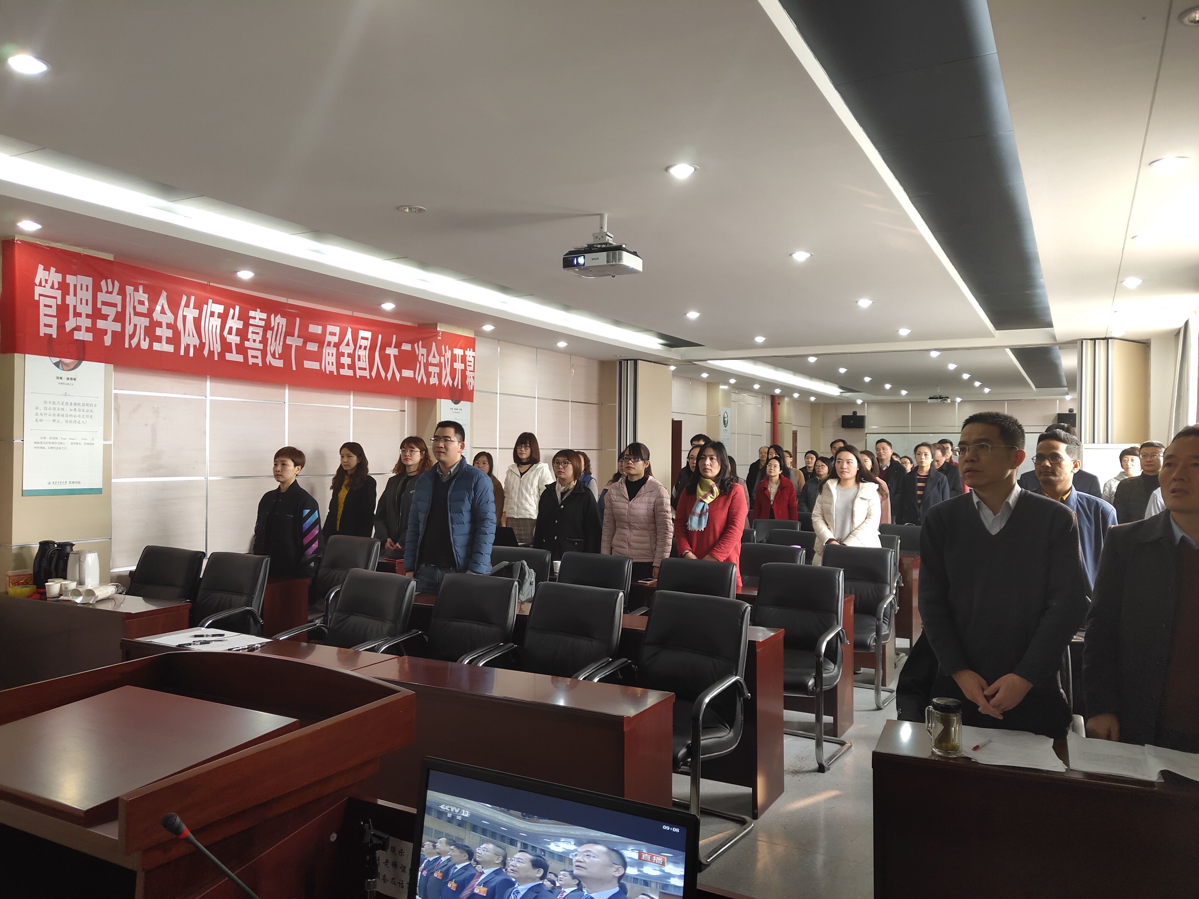 银河集团官网全体师生集中收看十三届全国人大二次会议开幕会并热议政府工作报告