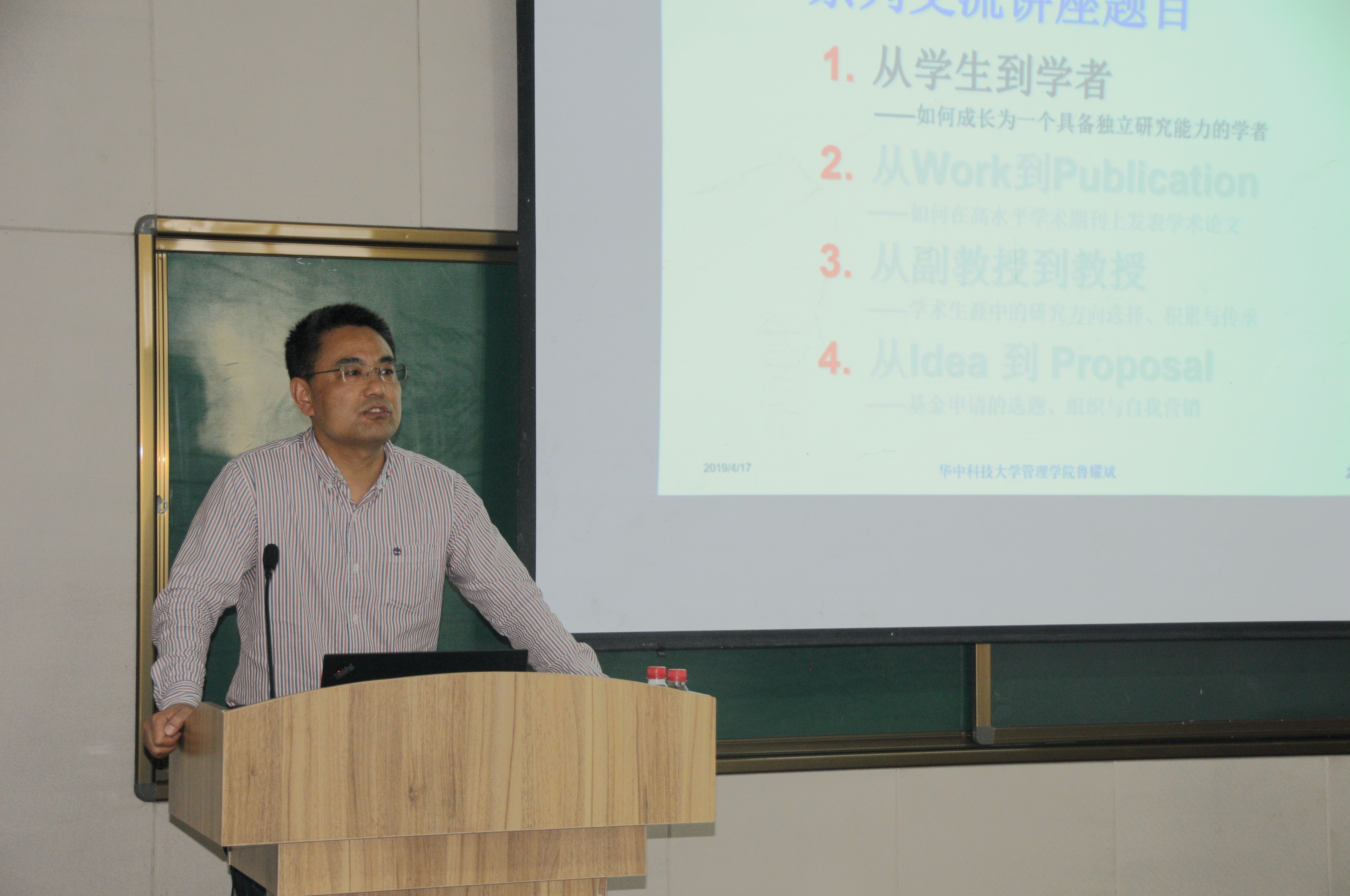 4月17日下午,华中科技大学银河集团官网的鲁耀斌教授应邀在210报告厅为公司师生做了题为“从员工到学者——如何成长为一个具备独立研究能力的学者”的学术报告。在公司副经理贾明教授的主持以及鲁耀斌教授的精彩演讲下,此次学术报告会得到与会的公司青年教师和博士及硕士研究生的一致好评,取得圆满成功。