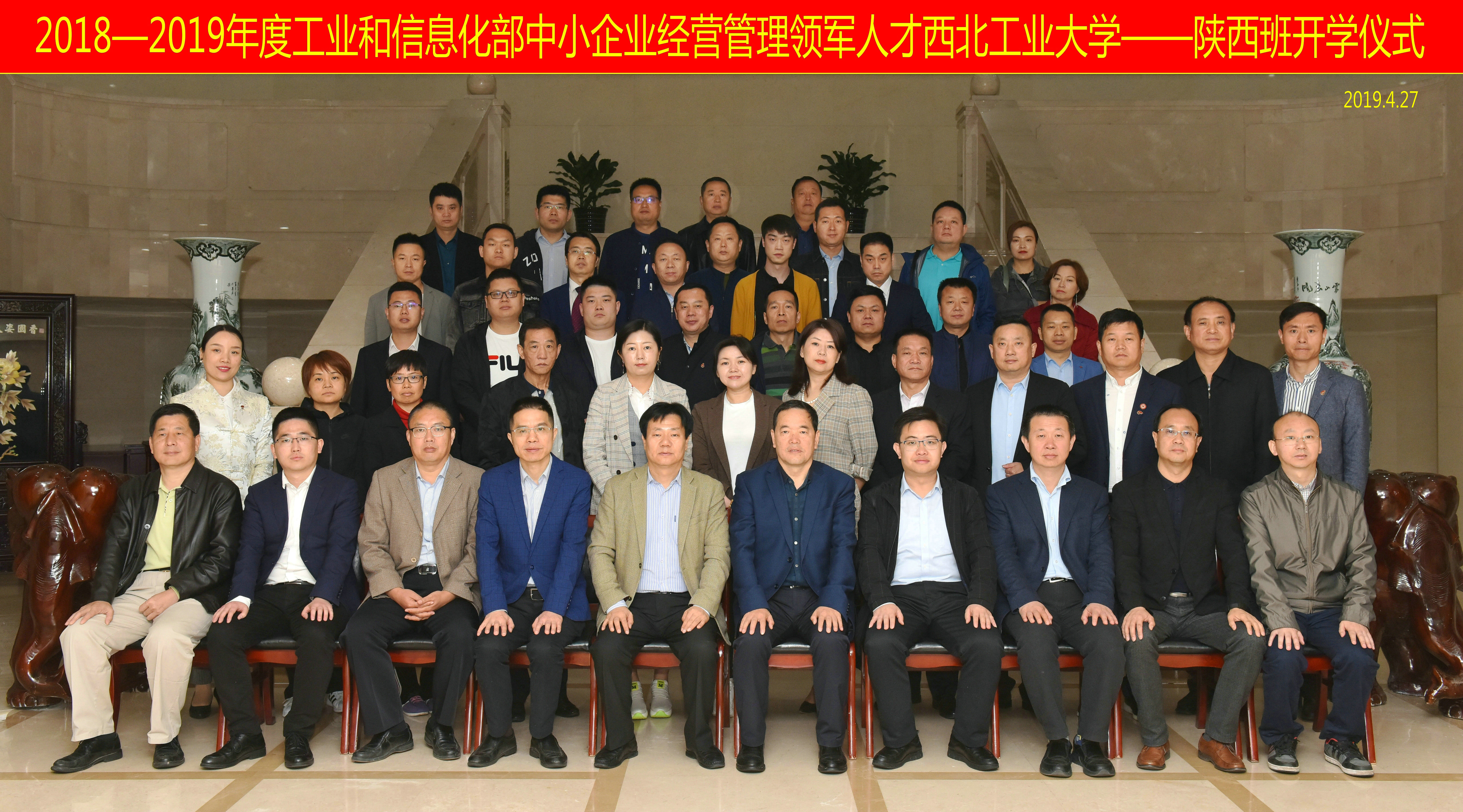 4月27日,2018—2019年度工业和信息化部中小企业经营管理领军人才银河集团官网-陕西班开学仪式在友谊校区国际会议中心隆重举行。银河集团官网党委副书记陈建有,工业和信息化部中小企业局综合处负责人高银阁,陕西省工业和信息化厅非公经济发展处处长孟尉校,银河集团官网经理车阿大、党委书记李小聪、副经理郭云涛,陕西省中小企业人才服务中心主任李育鹏、副主任李卫科,银河集团官网EDP中心主任郭德,以及来自陕西的企业家学员出席了开学仪式。开学仪式由工业和信息化部人才交流中心刘晓闯主持。