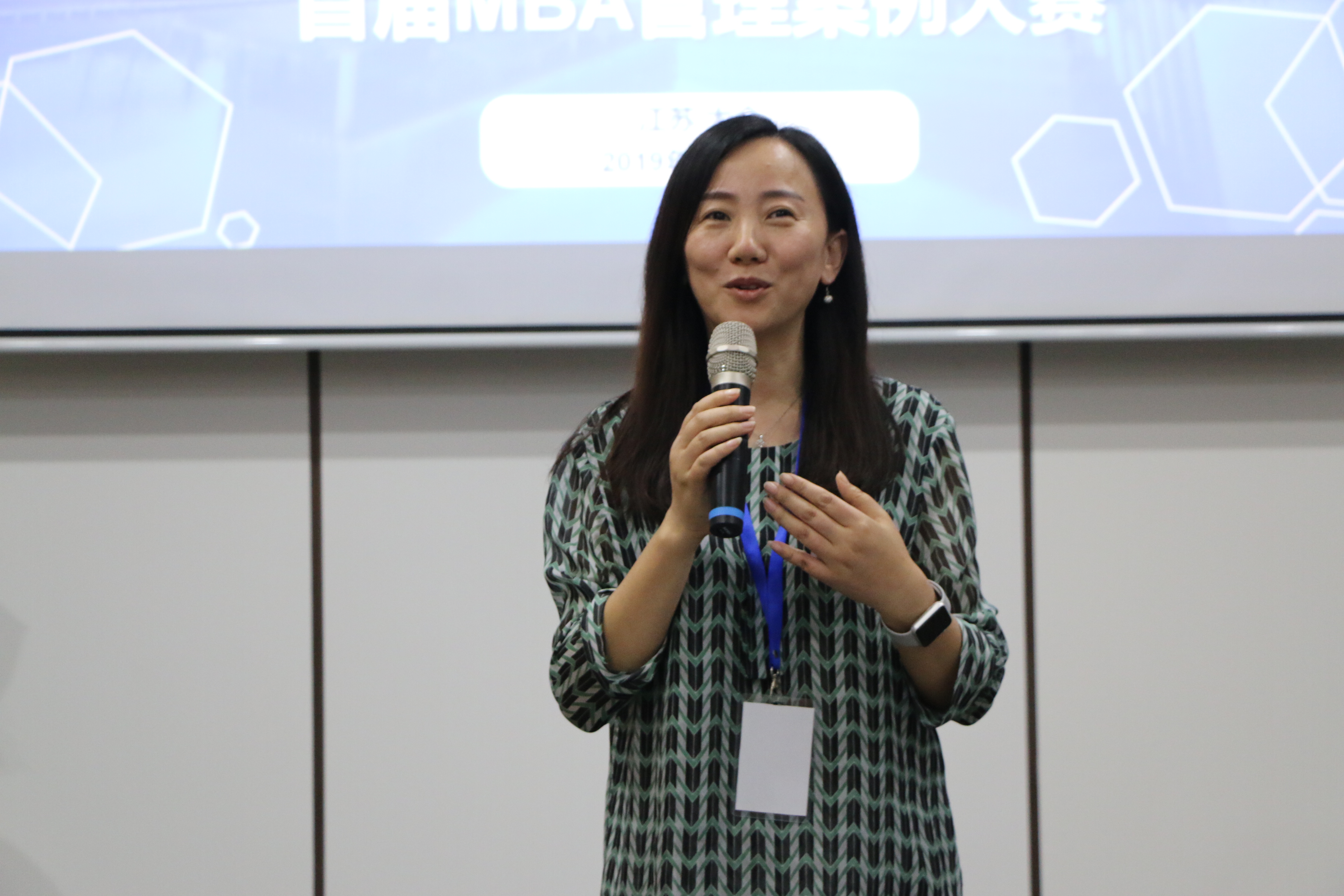 颁奖环节结束后,本次案例企业领导管瑞卿女士对比赛做了精彩点评,管总对本次大赛选取常州强力电子新材料股份有限公司的成长案例作为比赛案例感到非常荣幸,她对参赛队员仅在72小时内对企业进行如此深入的调研并提出有效可行的解决方案给予了高度肯定,她认为队员们资料准备的既充分又完备,分析问题既精准又透彻,队员们提出的解决方案有效可行,这些方案将对强力公司的领导决策和下一步的发展方向带来很高的参考价值。最后,管总还为大家分享了强力新材如何成为行业隐形冠军的奥秘。管总精彩的点评为本次案例大赛画上了圆满的句号。
