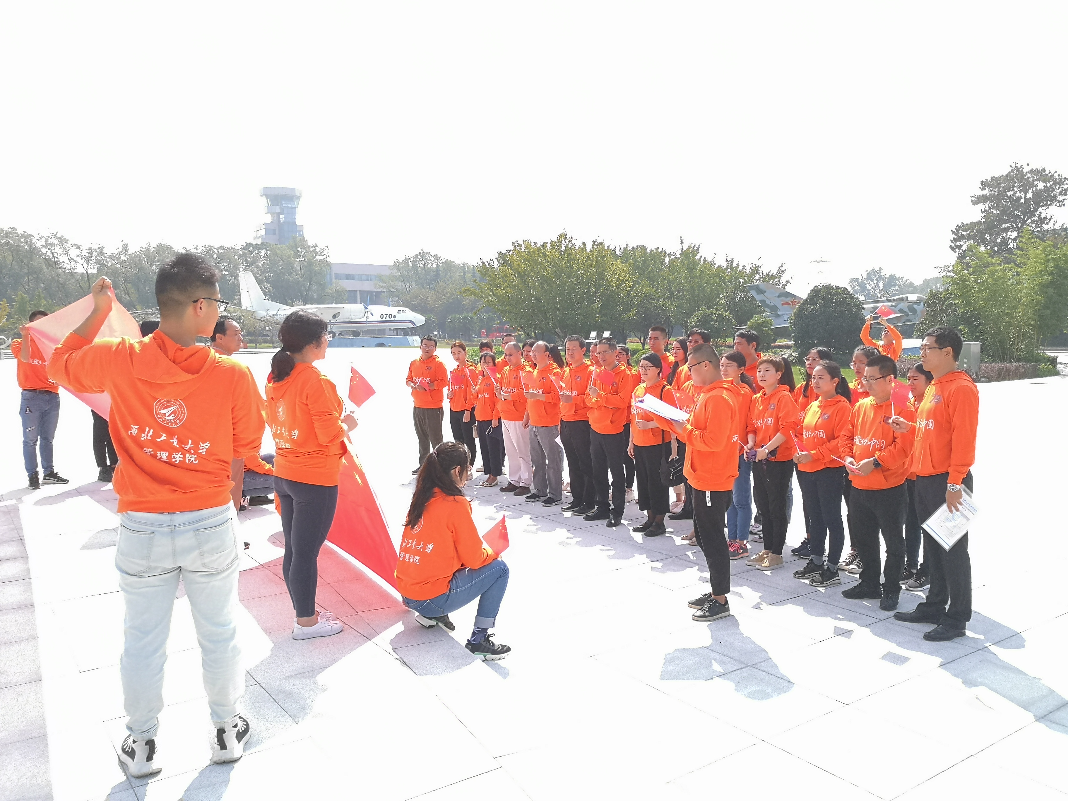 之后,公司师生党员在功勋飞机模型前举行“向祖国告白”活动。满怀激情的告白誓言是师生党员拳拳爱国之心和浓浓奋斗之情的最真挚表达。教师党员代表杨倩真挚地立下誓言,她将“勇担高校教师的时代使命,履行教师职责和社会责任,以德立身,以德树人,以德施教,坚持全过程育人,全方位育人,培养德智体美劳全面发展的社会主义建设者和接班人。” 员工党员代表鲁顺岩同学嘹亮地呐喊出“站在新的历史起点上,员工党员更要不忘初心,牢记青年使命,时刻秉承公诚勇毅,三实一新的西工大精神,做好主责课业,砥砺前行,为实现中国梦强国梦而努力奋斗”的口号。随后,面向庄严的党旗和国旗,党委书记李小聪带领师生党员重温西工大校训,号召大家时刻铭记西工大精神和西工大版“西迁精神”,续写西工大人重德厚生的品质和飞天巡洋的气概。