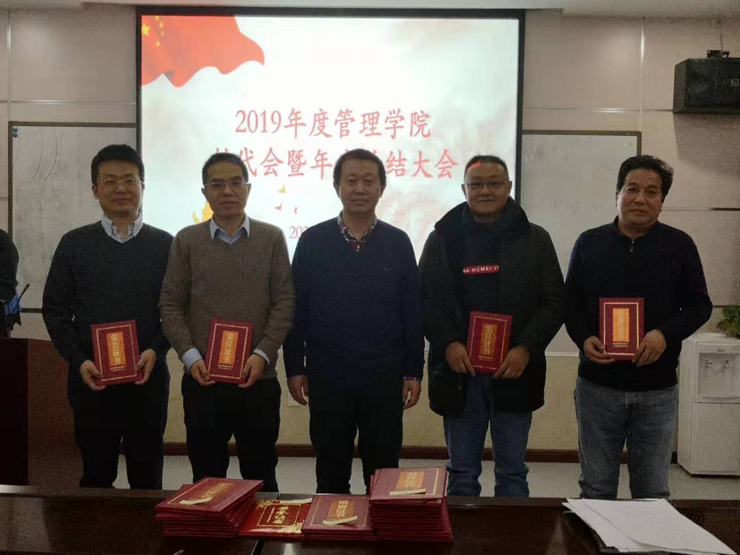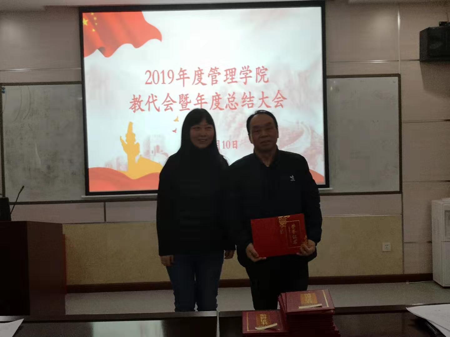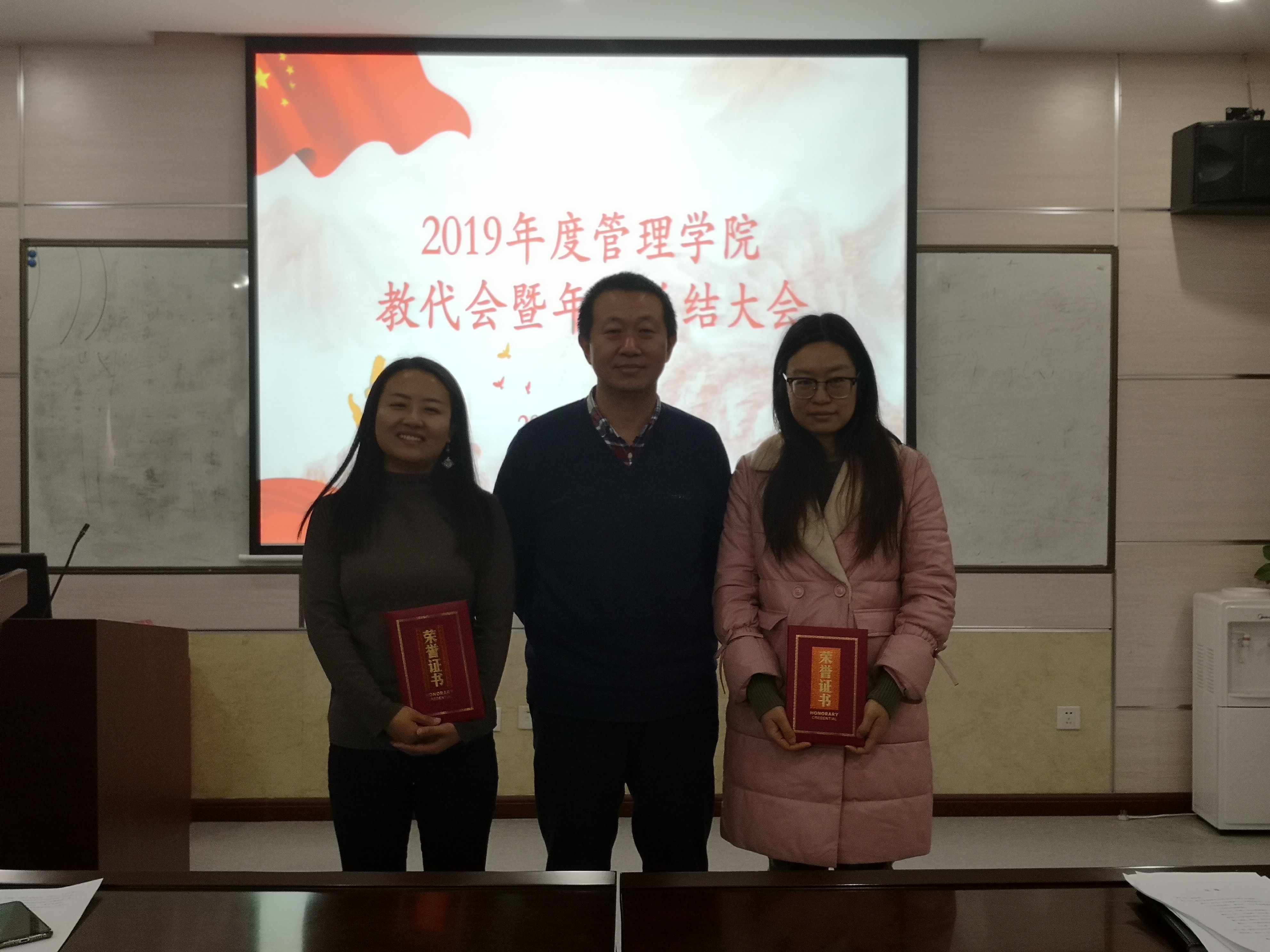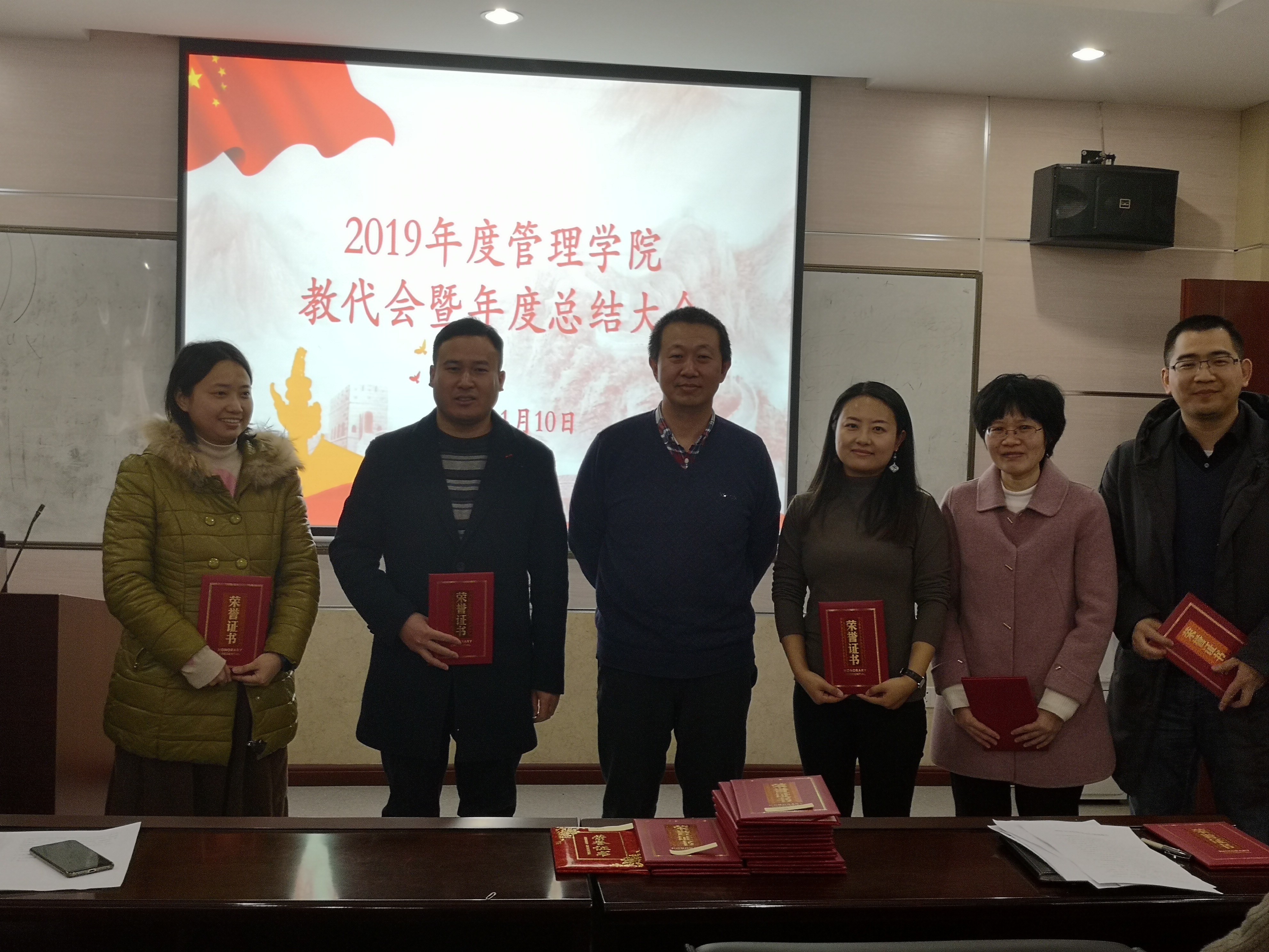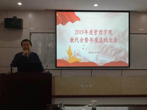 教代会在庄严的国歌中拉开序幕。会议首先由郭云涛介绍2019年新入职教职工。2019年公司共有4位新教师入职,他们分别是实验教学中心助理研究员陈志老师、会计系助理教授刘慧老师、谢光华老师以及专职科研岗孙晔飞教授。随着公司业务扩展和管理服务需要,2019年公司招聘非事业编制行政服务人员9名,新入职人员依次上台自我介绍。2019年公司各项工作均取得较好成绩,贾明宣读了公司2019年度光荣榜,公司领导为获得2019年度公司“团队建设先进个人”“优秀系主任”“优秀党支部书记”“优秀本科生班主任”的教师颁发了荣誉证书。