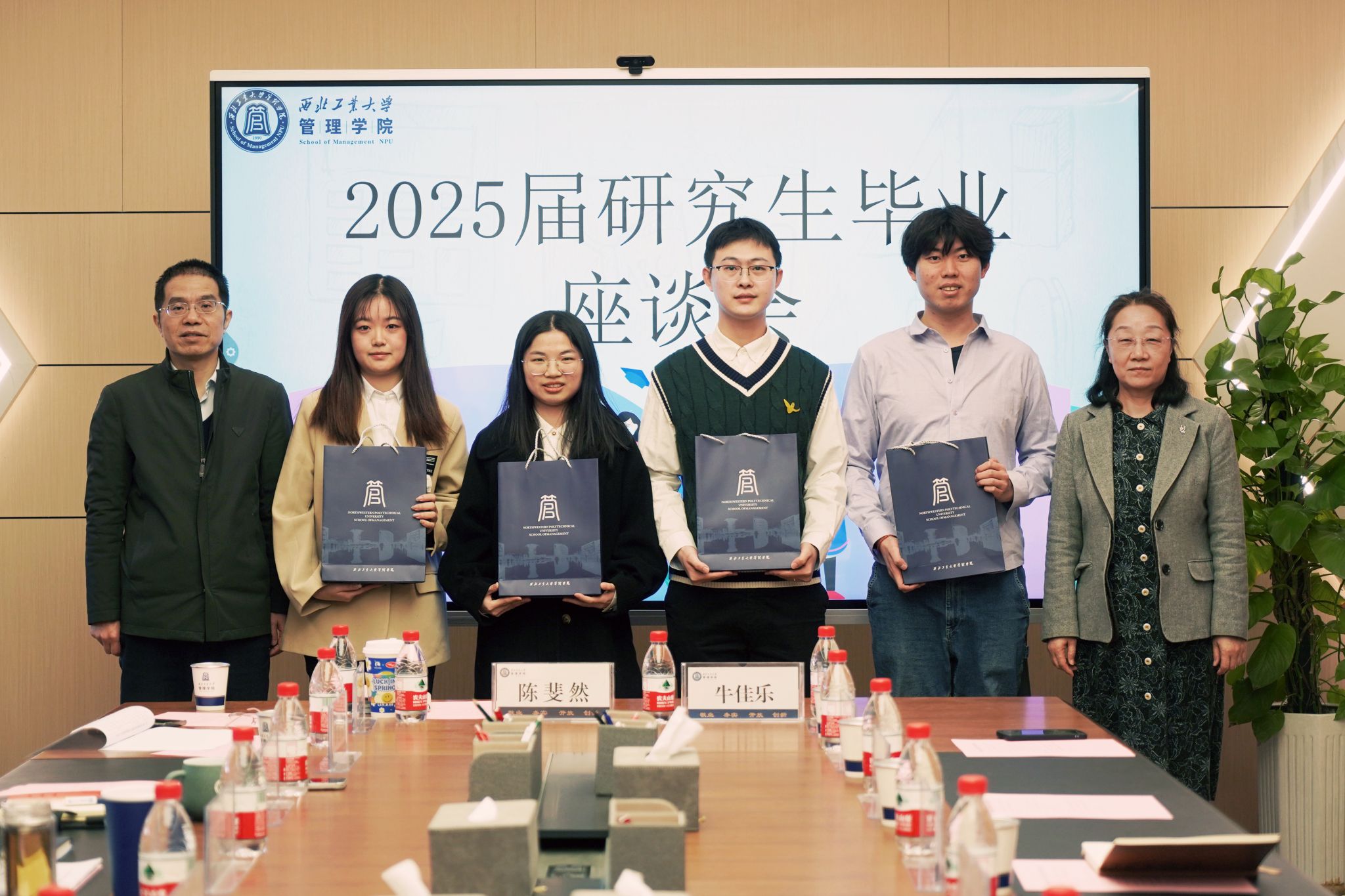 会上,张爽宣读了《关于聘任2025届硕士毕业生员工联络员的决定》,并与车阿大共同为4名员工联络员颁发聘书、赠送毕业纪念品,表达公司对毕业生继续联结母校、传承公司精神的期望。