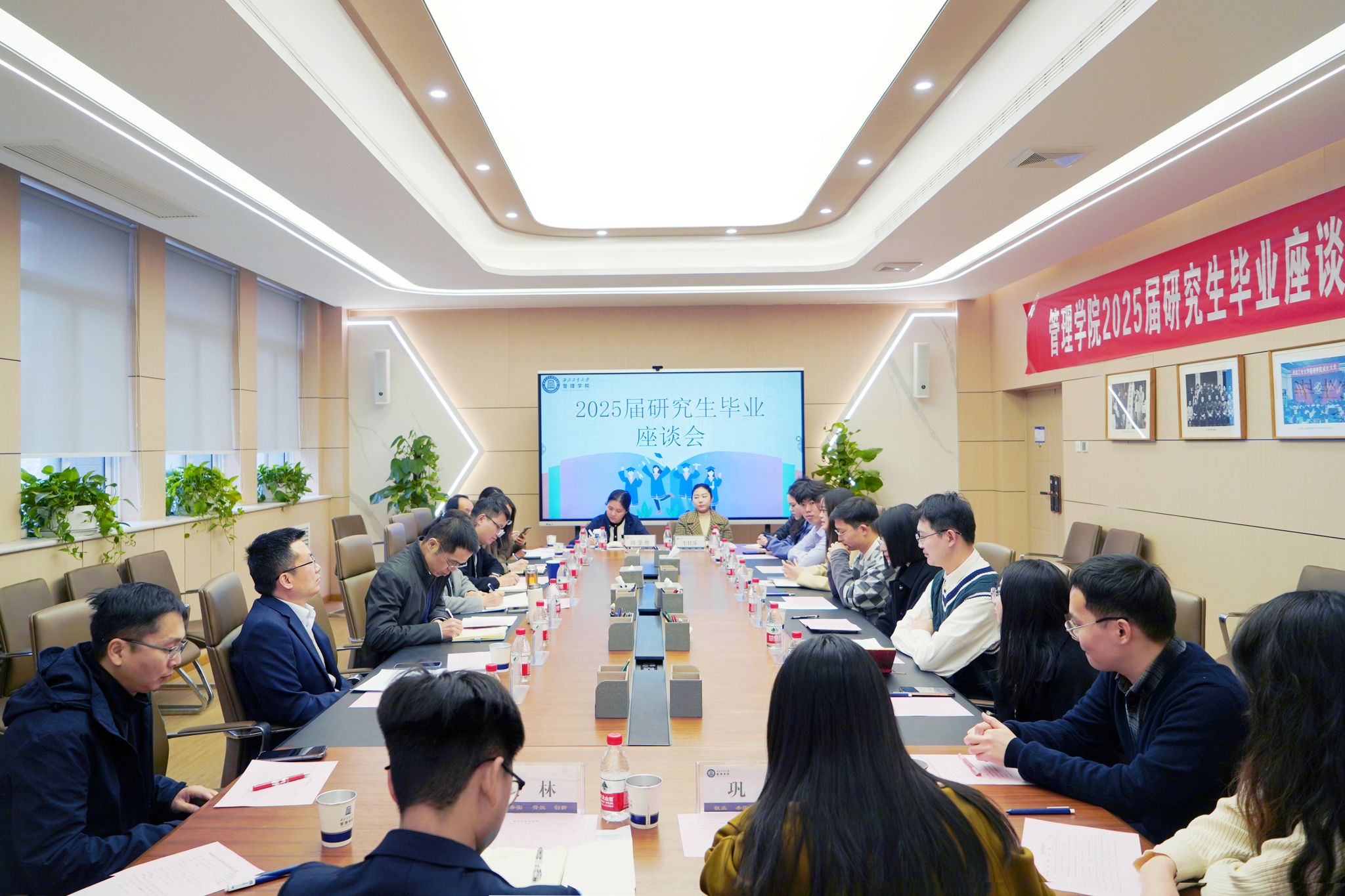 3月18日上午,银河集团官网顺利举行2025届研究生毕业座谈会。经理车阿大、党委书记张爽、副经理贾明、党委副书记王海啸,各系系主任,学工干部,研究生教学秘书,研究生代表齐聚一堂,以座谈会形式畅谈成长与收获。会议由王海啸主持。