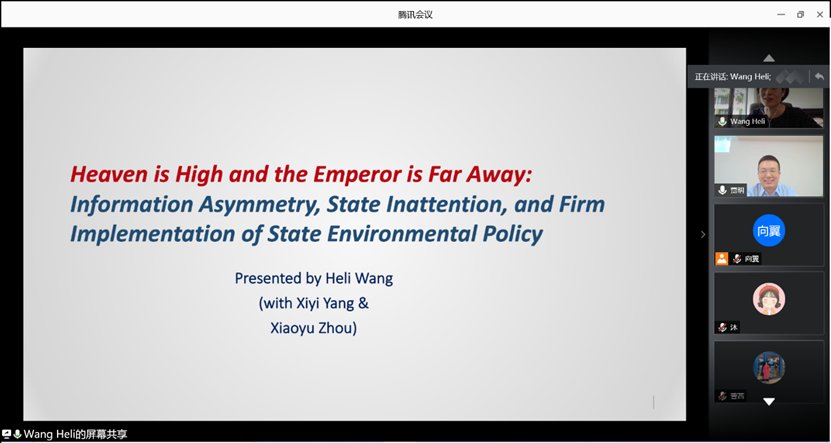 2020年8月10日下午,应银河集团官网贾明教授邀请,新加坡管理大学王鹤丽教授通过腾讯会议平台为公司做了题为“Heaven is High and the Emperor is Far Away: Information Asymmetry, State Inattention, and Firm Implementation of State Environmental Policy”的学术报告。本次报告由贾明教授主持,公司师生共100余人参与了此次报告。