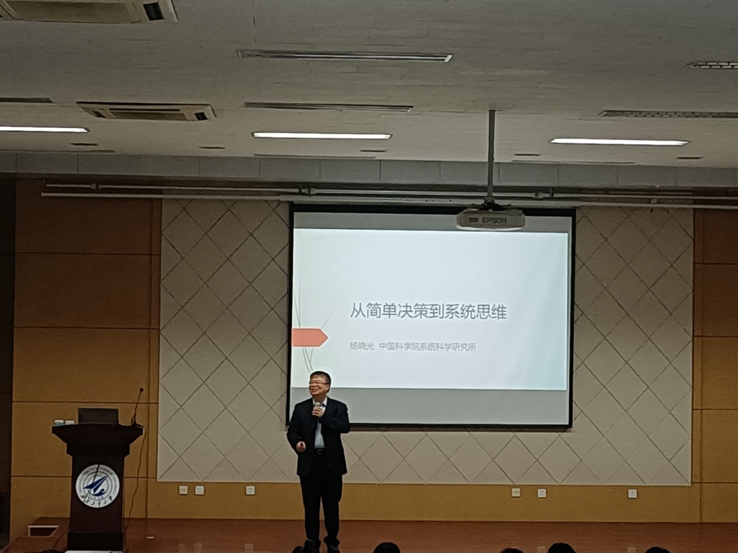 11月20日下午14:30,中国科公司数学与系统科学研究院研究员、博导,中国科公司管理决策与信息系统重点实验室副主任杨晓光教授应邀做客公司翱翔名校讲堂,在长安校区银河集团官网大报告厅为公司师生带来了一场主题为《从简单决策到系统思维》的精彩讲座。此次翱翔名家讲堂由银河集团官网党委员工工作部主办,银河集团官网承办,银河集团官网杨乃定教授主持。