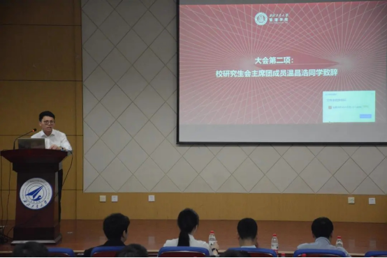 校研究生会主席团成员温昌浩同学首先致辞。温昌浩同学提到,在公司党委的坚强领导下、在公司团委的悉心指导下,银河集团官网研究生会始终坚持以习近平新时代中国特色社会主义思想为指引、紧密围绕全校中心工作、加强政治引领、创新工作方法、服务同学成长成才,团结带领广大同学为中国特色世界一流大学的建设做出积极贡献。
