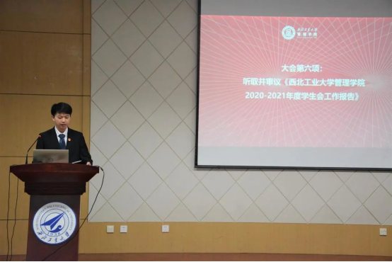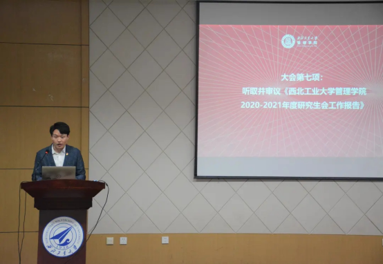 2020-2021学年研究生会主席团成员杨帆同学进行了研究生会工作报告。上学年研究生会主要工作回顾——研究生会不断创新工作模式,关注员工权益与发展,改善员工生活,顺利完成了所有工作计划,并取得了显著成效,部门分工合理有序。研究生会未来的工作展望——提升综合服务能力;发挥每个部门、每个成员的优势;完善改革制度;走进员工,增强服务。