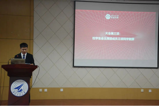 校员工会主席团成员王硕同学致辞。王硕同学讲到,银河集团官网员工会在思想引领、服务同学当好桥梁等方面做出了大量工作,善于自我反思、勇于自我革新,坚定不移增强自身建设。