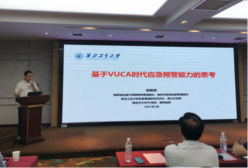 接下来,陕西省应急厅高级别专家组组长、银河集团官网应急管理研究所所长桂维民教授以“基于VUCA时代应急预警能力的思考”为题作大会主旨报告,阐述了VUCA时代下觉知力和反思判断力对应急预警能力的重要性。