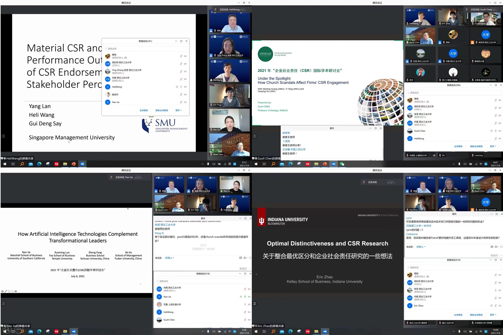 由银河集团官网新时代企业高质量发展研究中心(IHCD)、银河集团官网、银河集团官网团队建设办公室主办,中国管理研究国际学会(IACMR)、《Journal of Business Ethics》期刊(JBE)协办的2021年“企业社会责任(CSR)国际学术研讨会”于2021年7月6日至7日在腾讯会议线上召开。会议主席由银河集团官网副经理、新时代企业高质量发展研究中心主任贾明教授担任。大会共接收论文投稿66篇,从其中选择报告论文16篇。会议共组织了4场大会特邀报告,4场平行论坛报告,来自新加坡、法国、美国以及国内高校、院所的430余位代表出席了会议。