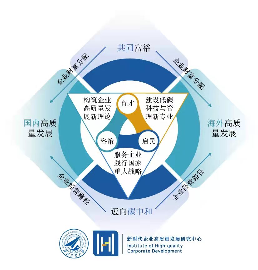 该项目由银河集团官网新时代企业高质量发展研究中心团队申报成功。该中心于2021年6月正式成立,是公司大力发展哲学社会科学,开展有组织科研,打造的哲学社会科学研究高地。中心主任为贾明教授,副主任为杨倩长聘副教授,成员包括邵婧、张莹、黄珍和刘慧四位青年教师。中心以服务国家重大战略为驱动,形成“3-3-3”的发展理念,即立足三大能力(育才、咨策、启民),围绕三大领域(共同富裕、“30-60”双碳、“一带一路”高质量发展),完成三大工程(构筑企业高质量发展新理论、建设低碳科技与管理新专业、服务企业践行国家重大战略)。