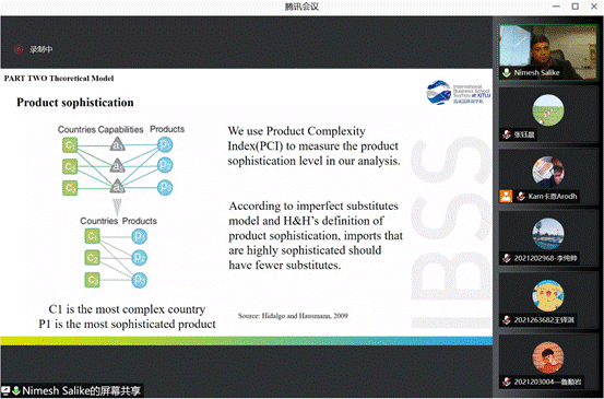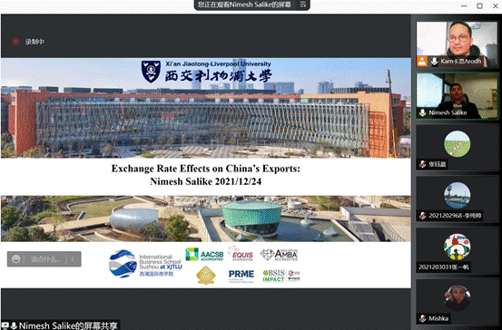 12月24日下午14:00,应银河集团官网邀请,西交利物浦大学Nimesh Salike副教授通过腾讯会议平台做了题为“汇率对中国出口的影响:产品尖端性及汇率弹性(Exchange Rate Effects on China’s Exports: Product Sophistication and Exchange Rate Elasticity)”的讲座。本次讲座由助理教授KARN ARODH LAL主持,公司教师、研究生近百人在线聆听了讲座。