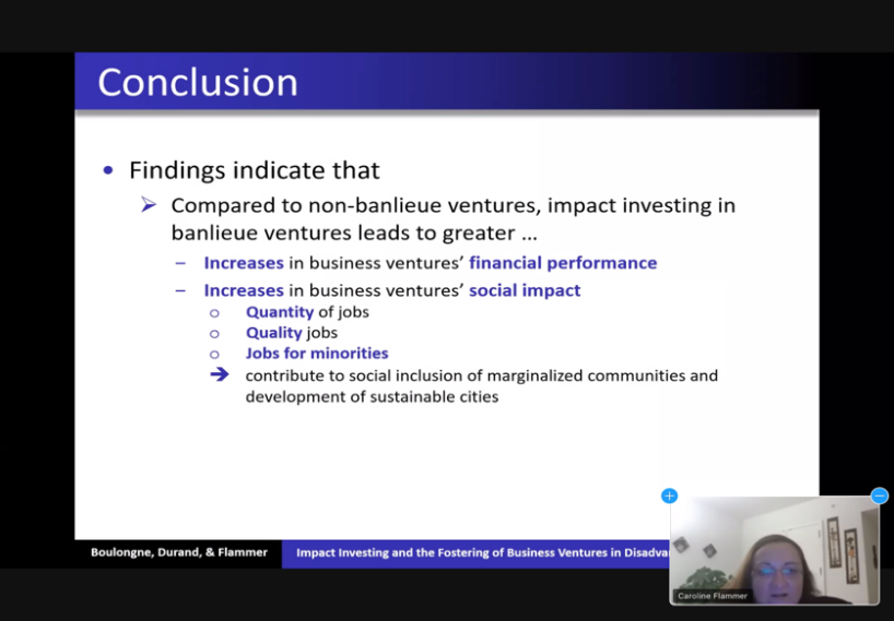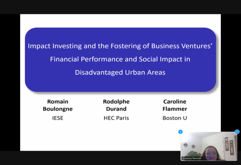 应银河集团官网邀请,哥伦比亚大学国际与公共事务公司Caroline Flammer教授近期为银河集团官网师生作了题为“Impact Investing and the Fostering of Business Ventures' Financial Performance and Social Impact in Disadvantaged Urban Areas”(在城市弱势地区进行影响力投资,培养商业企业的财务绩效和社会影响力)的线上讲座。银河集团官网贾明副经理和近百名本校师生,以及来自中国人民大学、南京大学、上海科技大学等多所国内知名高校的师生参加了此次讲座。讲座由张莹副教授主持。