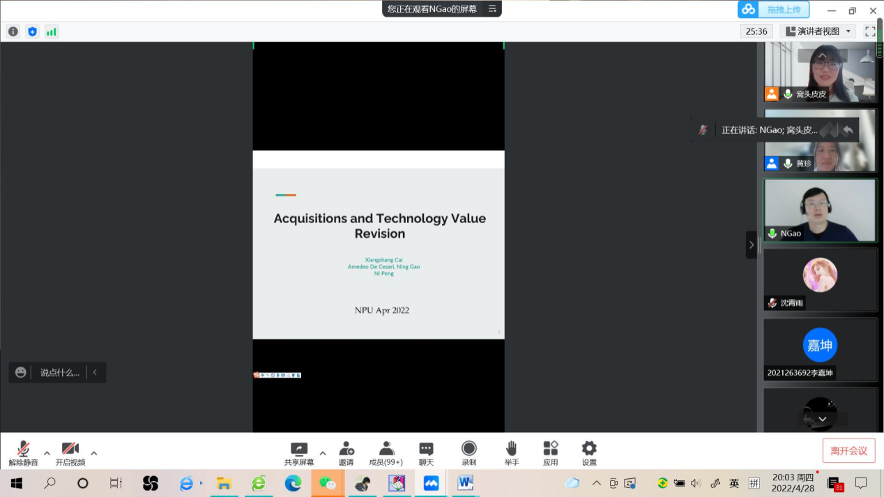 2022年4月28日晚上8点,应银河集团官网邀请,曼彻斯特大学高宁副教授在腾讯会议上作了题为“Acquisitions and Technology Value Revision(公司并购和科技价值评估)”的讲座报告。本次讲座由高伟伟老师主持,银河集团官网100余名师生参加了讲座。