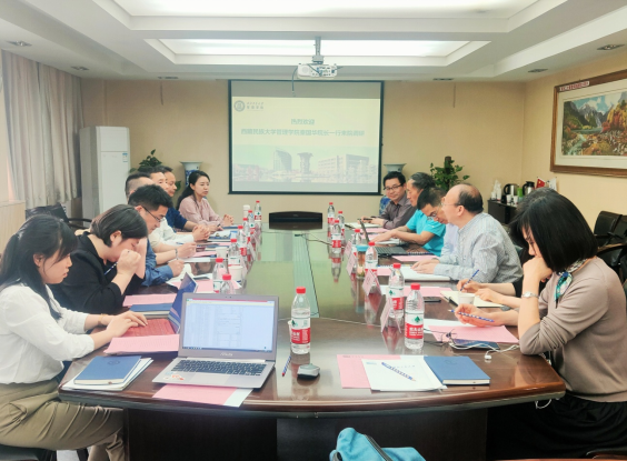 随后,秦国华经理从校史、公司学科专业设置等方面介绍了西藏民族大学银河集团官网的基本情况与发展现状。李迁副经理表示银河集团官网在团队建设、教育科研、团队队伍建设以及人才引进、专业学位教育等方面有着丰富的经验、做法,希望通过本次调研,进一步加强学习。陈刚副经理感言之前在管院求学,如今来管院求教,回到母校倍感亲切,并希望今后有机会和母校老师有案例方面的深入交流学习。会上,双方就公司的一流学科、一流专业的规划和建设,专业学位研究生的招生宣传、教学管理、论文质量管理、教学基地、联合办学、专业学位的学科点合格评估做法、人才培养特色化工作的管理思路及实施细则等多方面进行了广泛交流。