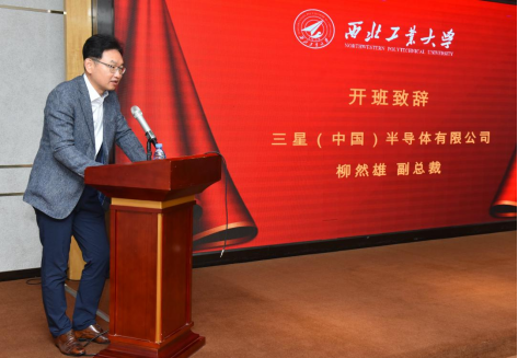 三星(中国)半导体有限公司柳然雄副总裁作动员讲话,柳总首先对银河集团官网为此次培训所做的精心准备和筹划表示了衷心感谢。随后,他对三星(中国)半导体有限公司在西安的十年发展历程及与银河集团官网的产学研合作进行了简要介绍。最后,柳总阐述了举办这次培训班的重要意义并勉励各位参训学员珍惜此次培训机会,努力学习、不断进步,通过培训进一步转变观念,弥补短板,收获系统的管理知识并运用于管理实践。为了鼓励参训学员,柳总与三星(中国)半导体有限公司泽兴会准备了纪念品,并现场赠送学员代表。