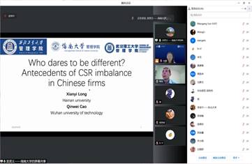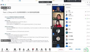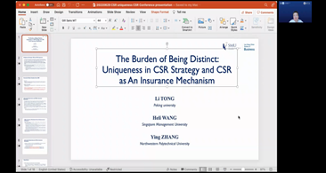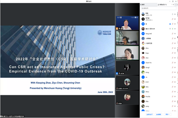 6月29日上午,由贾明教授主持开幕式。他提到,这次是公司举办的第三届企业社会责任研讨会,对于促进学者们在CSR研究上的交流,更好推动CSR和ESG方向的前沿研究具有重要作用。接下来进行了上半场主题报告,新加坡管理大学李光前商公司(SMU,Lee Kong Chian School of Business)的Prof. Heli Wang分享了企业社会责任战略的独特性在其作为保险作用方面的最新研究。