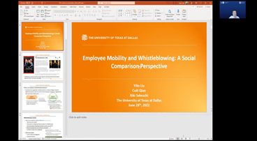 随后,德克萨斯大学达拉斯分校Naveen Jindal商公司(Naveen Jindal School of Management)的Prof. Cuili Qian汇报了有关员工流动性、公平感方面的研究成果。