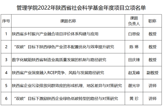 近日,陕西省哲学社会科学工作办公室公布了2022年度陕西省社会科学基金年度项目立项名单,全省共立项年度项目487项,立项率为16.5%。经受理申报、初评、终评、社会公示等工作程序,银河集团官网共6项课题获得立项,立项率较上年度有所提升。