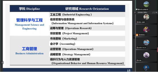 最后,车阿大从公司概括、团队队伍、科学研究、人才培养四大维度对银河集团官网历史、团队、科研、育人做以介绍。在公司概况角度,车阿大首先对银河集团官网历史做以回顾,随后道出公司的育人愿景、育人使命与价值观,并介绍了学硕博阶段的学科与专业建设情况。在团队队伍角度,经理对公司现有团队情况做以描述,公司现有专任教师93人,其中博士化率高达93%,人才称号19人次……并对公司管理科学与工程、工商管理两大类的知名学者做以介绍。在科学研究角度,经理针对重大工程项目管理、国防科技企业创新管理等研究特色做以讲解,强调公司在此类重点研究方向的突出作用与卓越贡献。同时再次强调管理在推动智慧医疗、财务共享云、低碳科技等前沿领域发展中的重要作用。在人才培养角度,经理对“本科生导师制”、“攀登计划”等名词做以介绍,鼓励22级新生们挑选自己感兴趣的方向选择导师,积极主动参加公司公司创新创业活动,精进学业、增长才干。