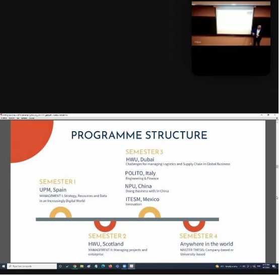 2022年9月7日,欧盟伊拉斯莫国际工业管理硕士(IMIM - International Master in Industrial Management)2022-2024项目启动会在西班牙马德里理工大公司内举行。银河集团官网经理助理邵婧副教授及外事秘书权梦甜子受邀在线参加,同期参会的还有来自英国赫瑞瓦特大学、意大利都灵理工大学、墨西哥蒙特雷科技大学的项目负责人以及即将入学的新生。会议由马德里理工大学工业工程公司的Isaac Lemus教授主持。