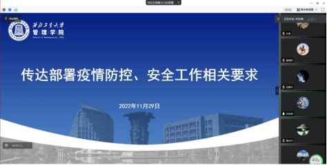 会上,乔彩燕传了达公司疫情防控工作会议精神,要求全体教职工严格落实疫情防控各项要求,并积极参与公司疫情防控相关工作。同时强调,全体教职工要全力做好疫情防控下的安全工作,特别是辅导员、班主任、导师要深入员工一线,充分发挥员工干部的作用,加强员工的思想引导,维护校园安全稳定。