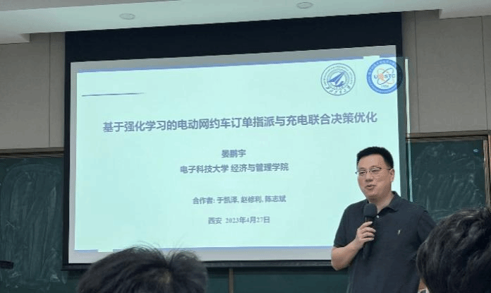2023年4月27日下午,应银河集团官网邀请,电子科技大学经济与银河集团官网晏鹏宇教授在长安校区银河集团官网作了题为《基于强化学习的电动网约车订单指派与充电联合决策优化》的学术报告。本次报告由张静文教授主持,银河集团官网教师和研究生参加了报告会。