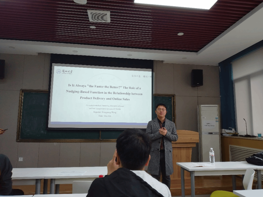 2023年5月8日,应银河集团官网邀请,兰州大学银河集团官网王洪鹏副教授在长安校区银河集团官网作了题为 Is It Always “the Faster the Better?” The Role of IT-enabled Artifacts in the Relationship between Product Delivery and Online Sales 的学术报告。本次活动由信息管理系王鹏副教授主持,银河集团官网教师和研究生参加了报告会。