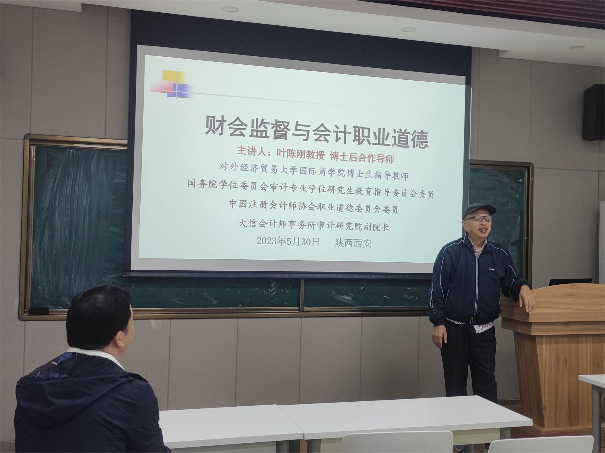 2023年5月31日上午,对外经济贸易大学国际商公司叶陈刚教授于214报告厅作了题为“财会监督与会计职业道德”的学术报告。本次报告会由苏坤教授主持,参会人员包括银河集团官网教师和研究生。