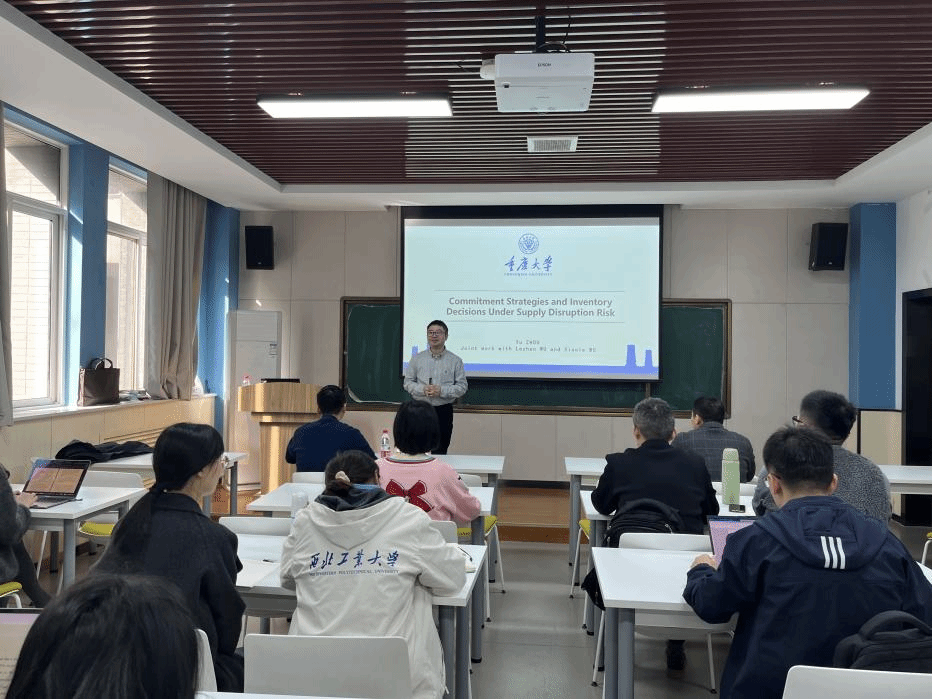 2023年10月30日,重庆大学经济与工商银河集团官网周宇副教授应邀在210报告厅做了题为“供应中断风险下的库存决策与承诺策略”的学术报告。报告会由洪兆富教授主持,来自银河集团官网研究生以及部分教师参加了此次报告会。