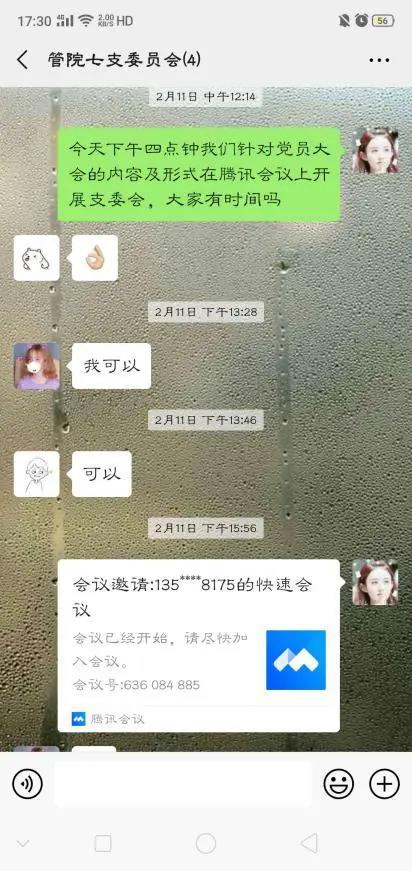 支委会讨论的最终结果:按预期讨论结果,我支部于2月14日下午三点准时开展线上党员大会,本支部23名党员同志积极参加本次线上会议,本次会议主要形式为疫情状况分享(即分享自己身边防控疫情的所见所闻或者亲身经历等),通过这次交流我们了解到有很多地方的疫情状况很严重,甚至全家人都没有口罩无法出门买菜,有些地方疫情没过又有了禽流感,真的是一波未平,一波又起……