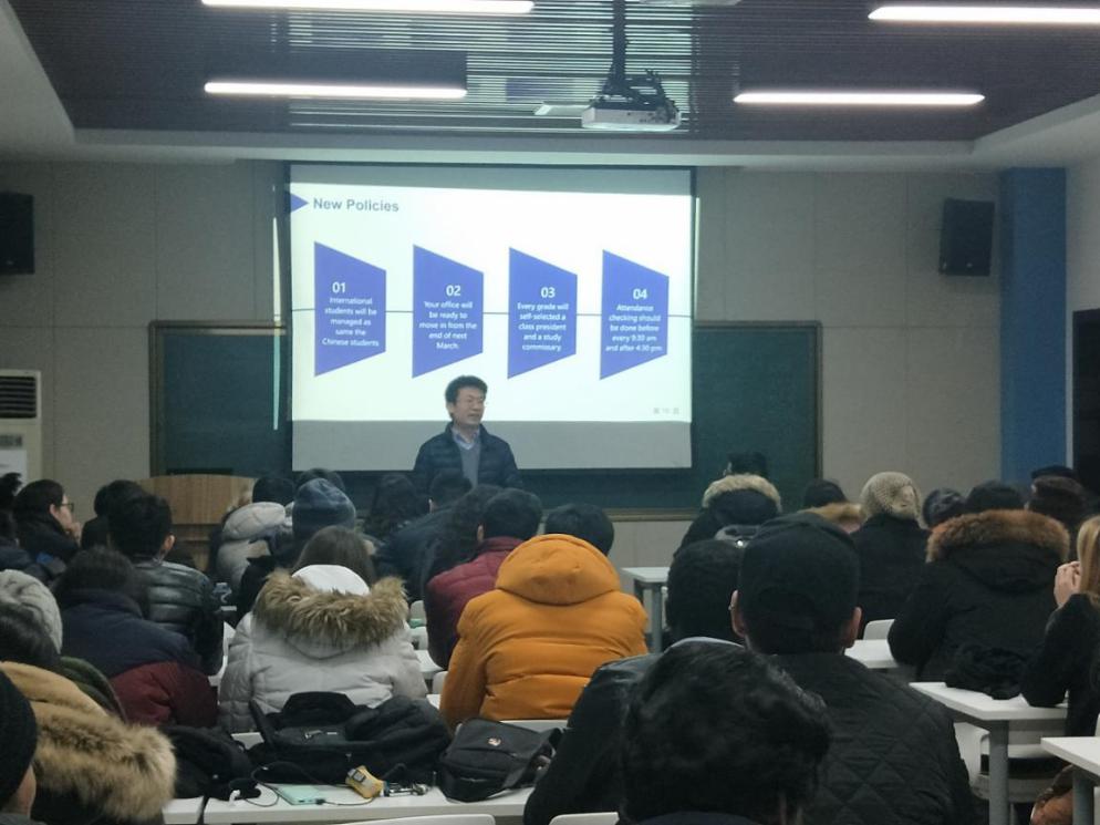 会上,首先由国际教育公司辅导员姬老师、韩老师对职工日常生活学习管理进行简单说明,韩老师尤其强调职工在华安全问题以及非法打工问题,指出员工应以学业为重,遵守中国法律法规。