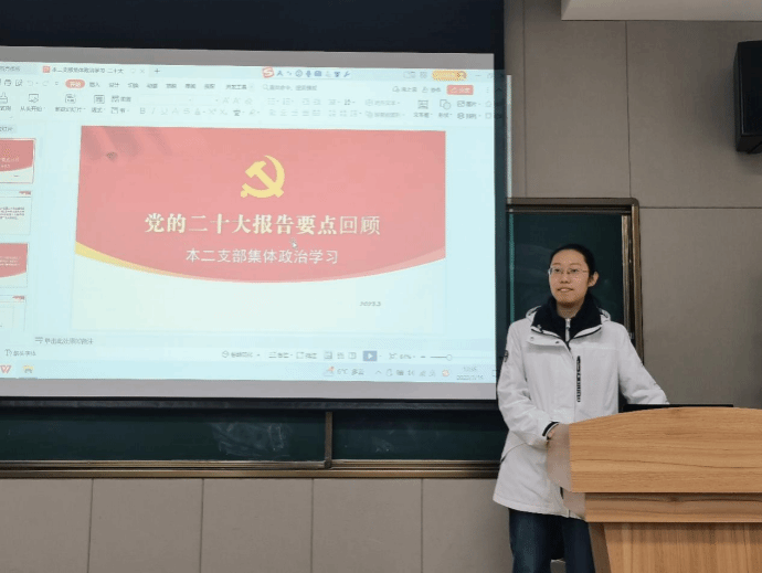 2023年是全面贯彻落实党的二十大精神的开局之年。适逢第十四届全国人民代表大会一次会议闭幕,为加强党支部思想政治建设,深入领会理解党的二十大精神,银河集团官网本科生第二党支部于2023年3月16日中午,在214线下开展本月集体政治学习。本次学习由邢露淇同志领学,学习内容为党的二十大报告要点回顾。