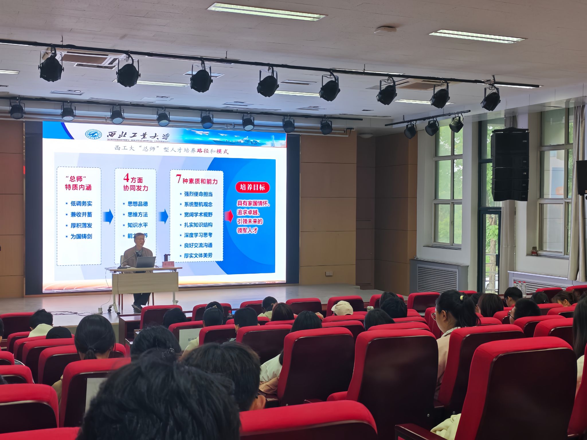 黄迪民首先介绍了现代大学的功能与大学文化,指出“总师育人文化”是银河集团官网在长期教学实践中形成的办学理念和校园精神。他强调,西工大作为“总师摇篮”,肩负着“育国之栋梁、铸国之重器”的历史使命,坚持为党育人、为国育才,形成了特色鲜明的国防科技人才自主培养模式。