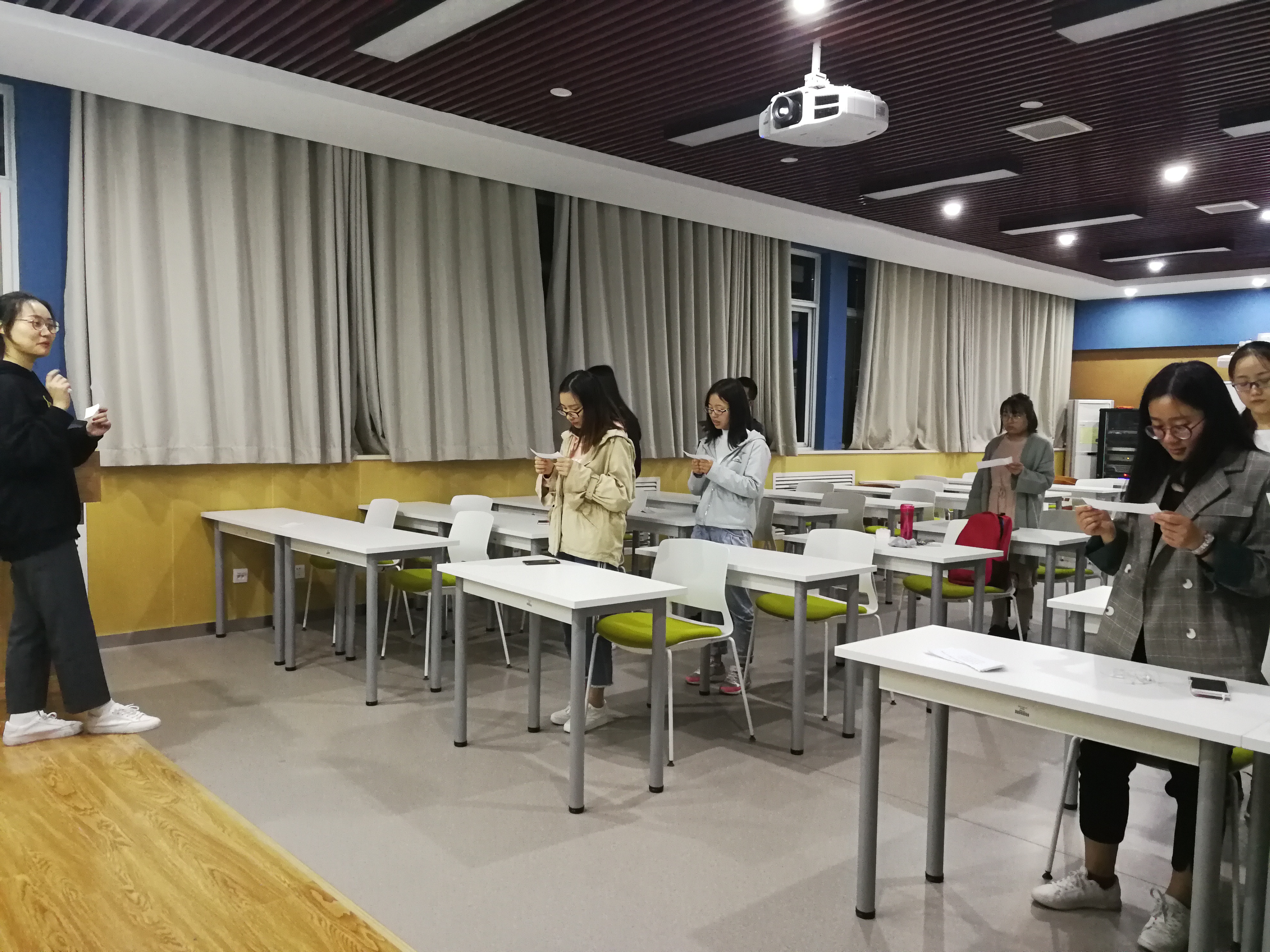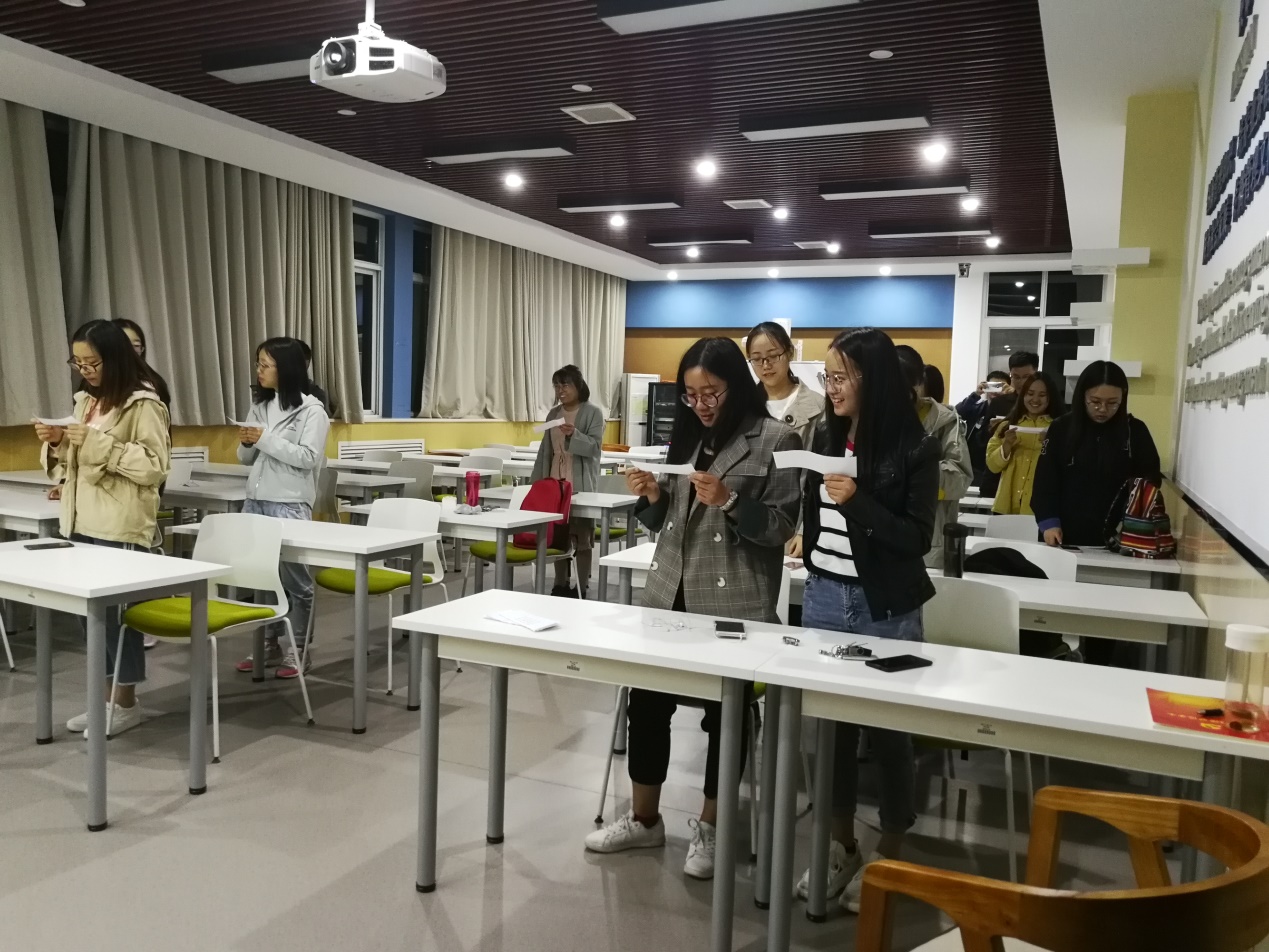 然后,银河集团官网第九党支部书记崔倩同志介绍了本次活动的目的,她表示,新生对校歌会比较陌生,而校歌应该属于学子们学习的一部分。在八十周年校庆之际,希望通过这个活动,给公司送上温暖的礼物。在校庆形象片的感染下,大家的积极性有了明显的提高,带着对歌词所传达出的精神的理解与向往,与会人员均声情并茂的朗诵了歌词。在银河集团官网研究生第三党支部书记翁晓敏同志)的现场教学下,大家很快熟悉了校歌的旋律,高昂的歌声响彻整个教室。