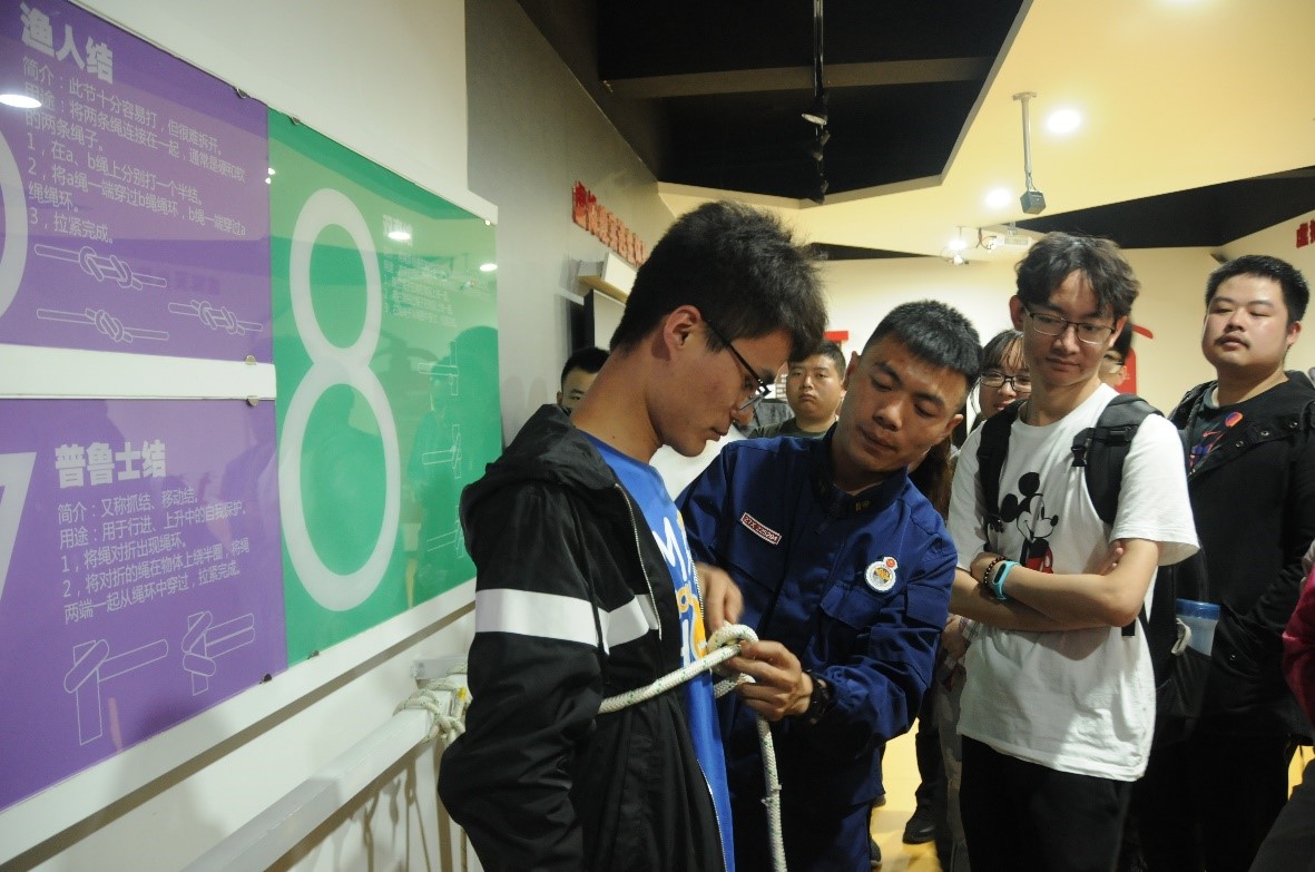 随后同学们来到了消防员的生活区,参观了消防战士的宿舍、篮球场、图书室、心理咨询室等场所,切身走进消防英雄们的日常生活。在员工的邀请下,消防官兵们同员工代表之间开展了一场别开生面的篮球友谊赛,在互动的过程中,大家看到了消防战士们活泼多彩的一面。随后消防员带领大家参观了科普教育室,耐心为大家讲解消防知识与逃生技巧,提高了同学们的消防知识水平与应急处置能力。